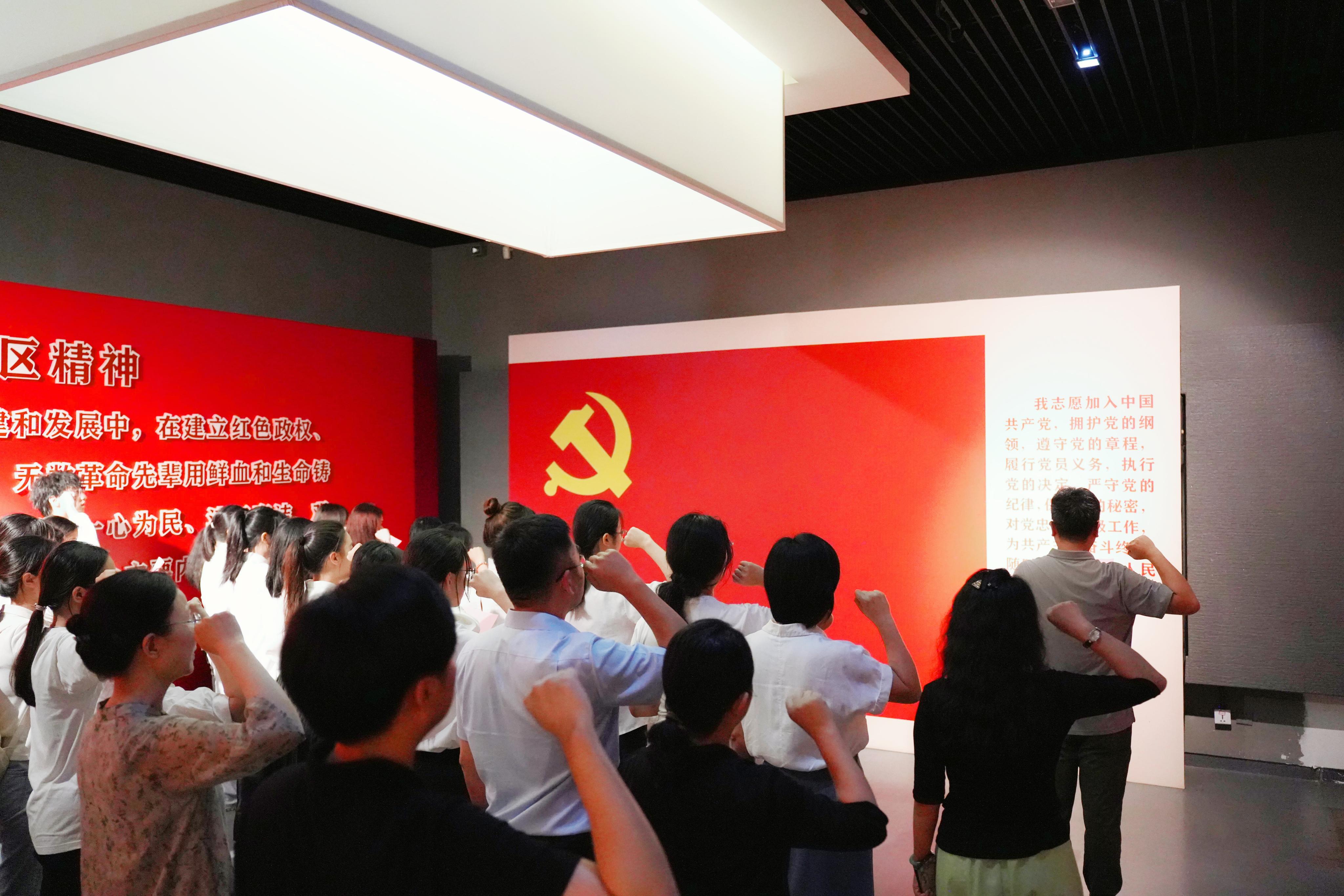 观展毕,学院19名新发展党员移步福建苏区文物展区,在老党员带领下于党旗前郑重宣誓。誓言铿锵,表达了传承红色基因、永葆清正廉洁政治本色的坚定决心。