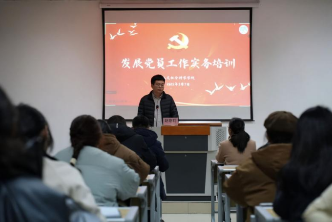 邀请校党委组织部赵艳莉老师于院楼402教室为学院党务工作者作发展党员工作实务培训。