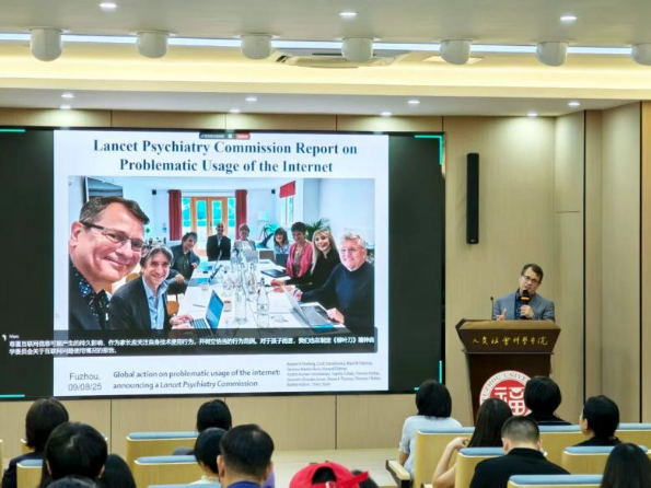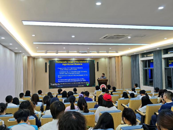 讲座开始前,苏文亮教授代表组织方对Potenza教授的莅临表示欢迎,并向听众介绍了Potenza教授在国际成瘾领域所做的突出贡献。Potenza教授结合已开展的大量国际合作研究,剖析数字技术对青少年心理健康特别是问题性网络使用的影响,并提出应对策略。