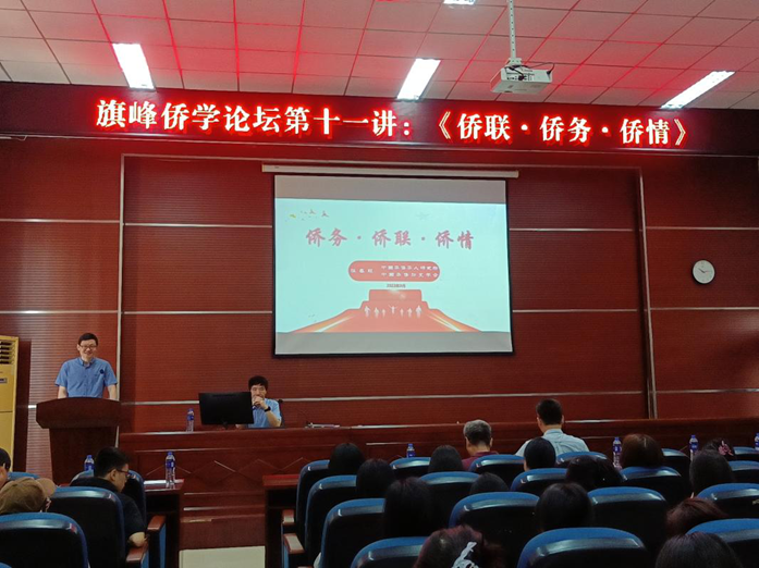 在本次侨学论坛中,张春旺所长从什么是侨务工作、侨务工作对象、涉侨工作机构与组织、侨务工作原则四个方面向师生们介绍了侨务工作的相关知识;从党的侨务工作产生与延安侨联的建立、侨联建立与发展、侨联组织的定位、性质与组织架构等方面讲解了侨联组织的发展历程。张春旺所长指出,侨联工作的特点是群众性民间性、涉外性、统战性三个工作属性的有机统一。侨联工作基础在国内,重点在海外,其发展依托血缘地缘业缘为基础,以亲情乡情友情为纽带。张春旺所长告诉师生们,当今时代拥有新的发展机遇,了解侨情变化与侨务工作面临的课题、对海外侨情拥有基本认识并进行判断研究、做好联谊交友工作,对我国的不断发展进步至关重要。