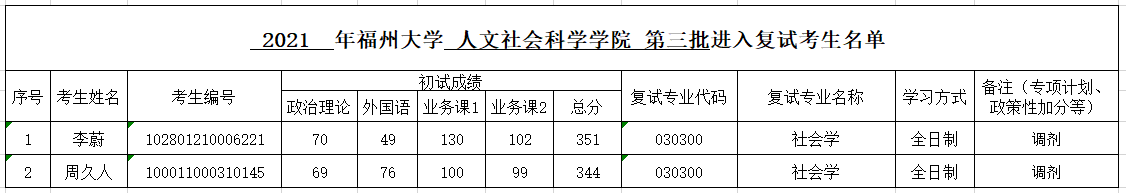 现将第三批参加复试考生名额公布: