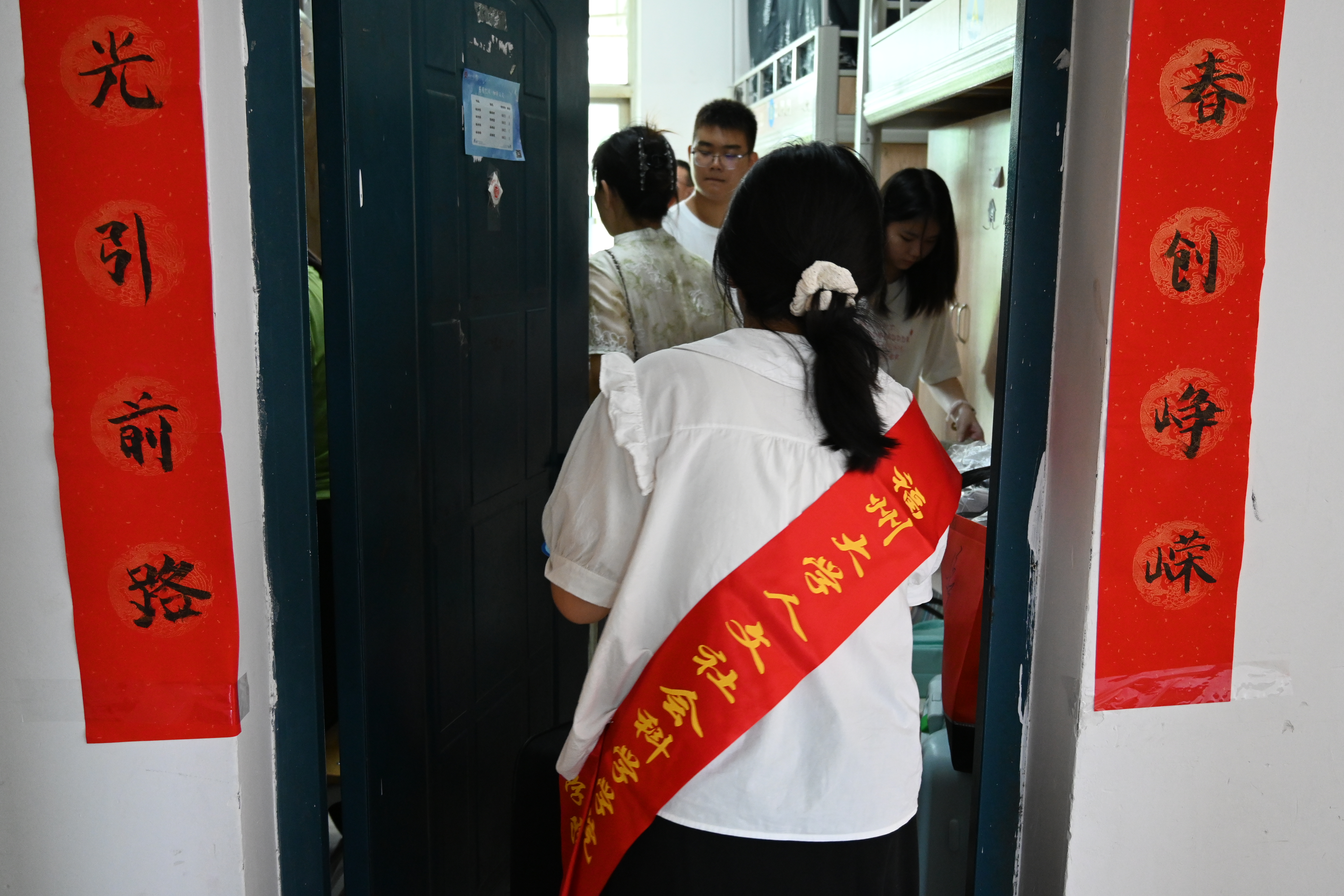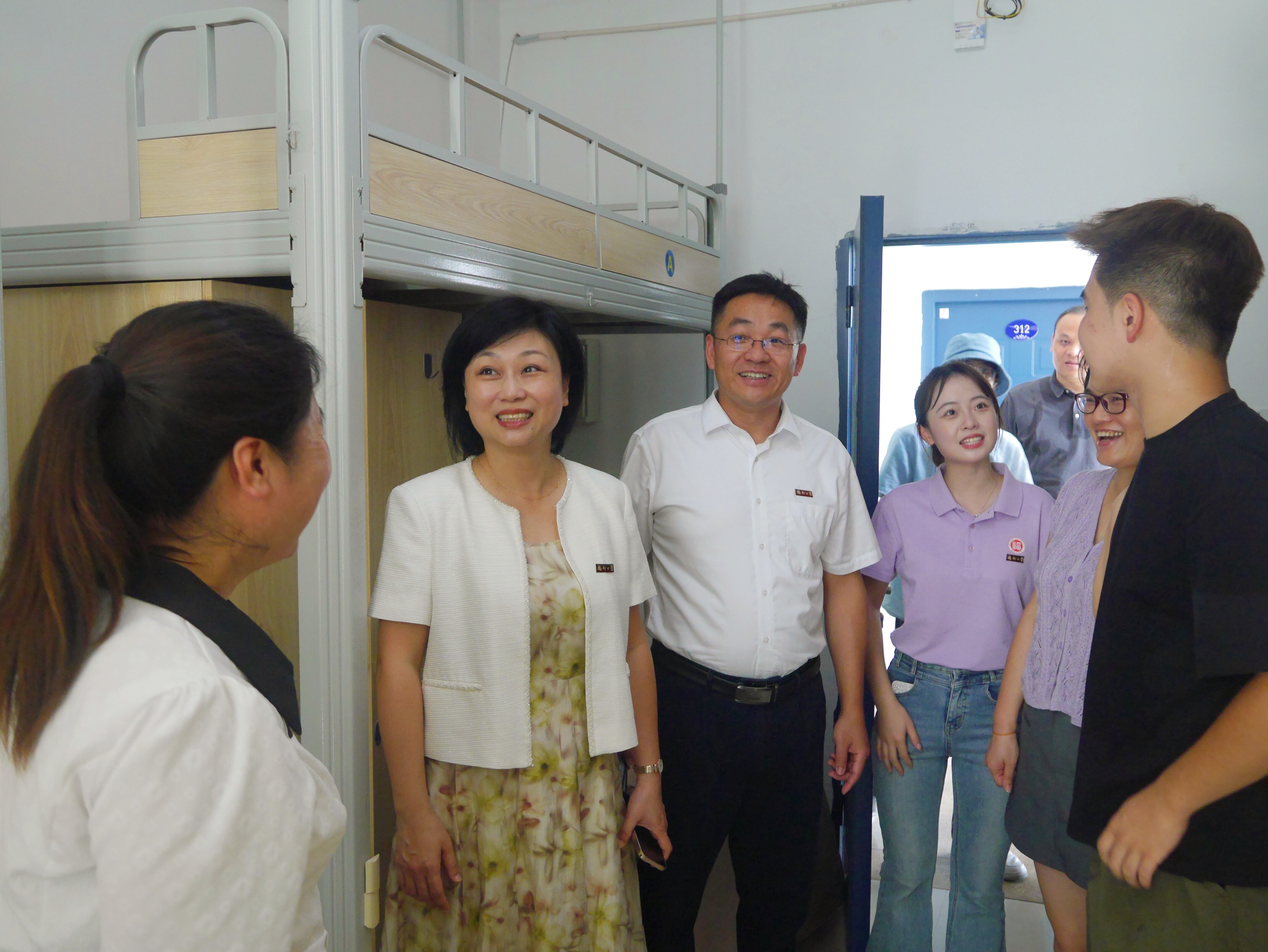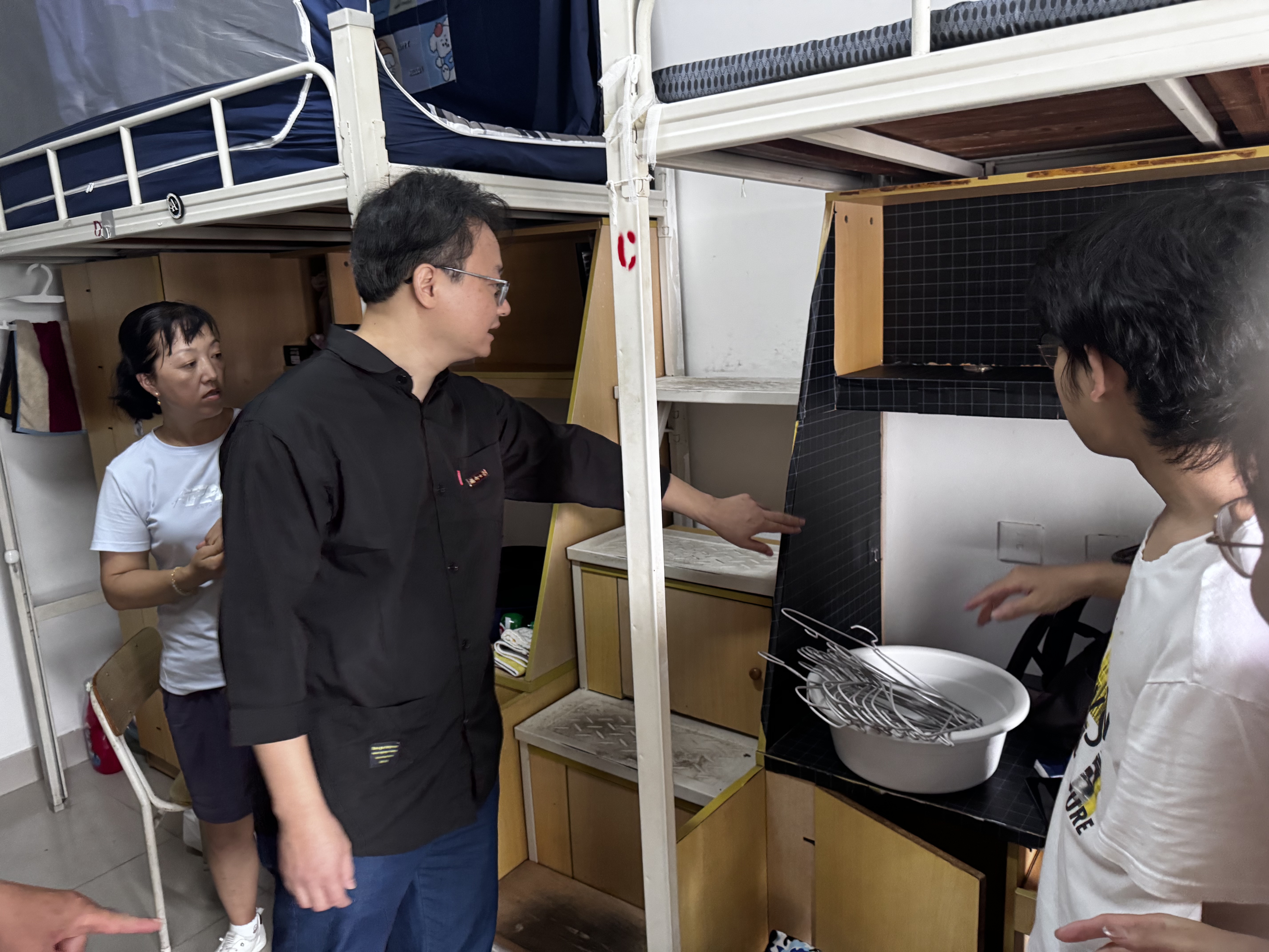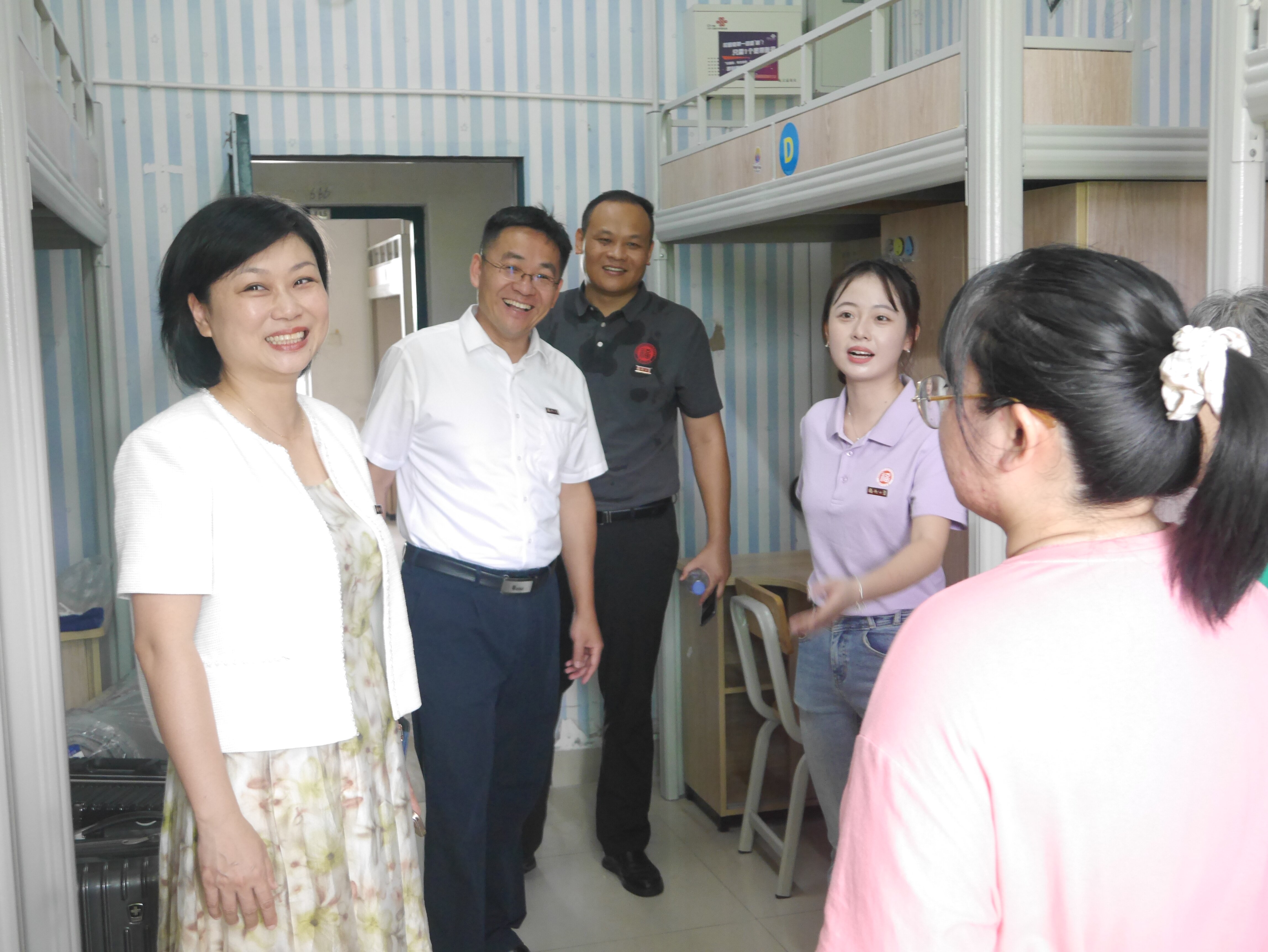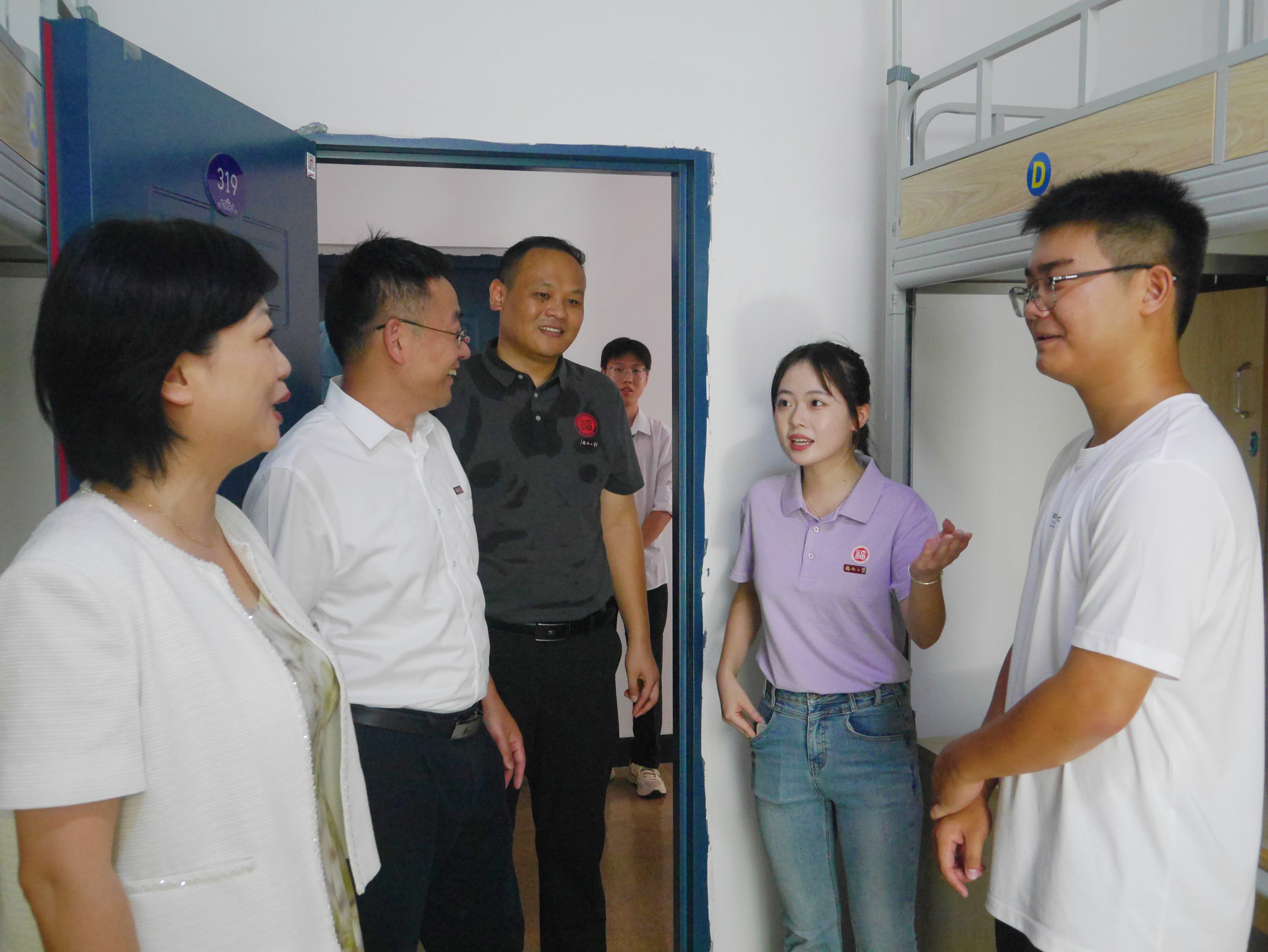 院党委刘玮书记,院长吴慧娟教授,党委赵燕松副书记应用心理学系主任赵陵波教授、苏文亮教授,音乐学系主任黄青副教授,新生辅导员老师走访新生宿舍倾听新生开学心声,帮助尽快熟悉校园生活刘玮书记细致询问同学的入住感受与适应情况,与新生分享见闻、亲切交流;赵燕松副书记叮嘱同学有困难及时联系老师,并就设施问题现场推进报修,切实解决新生诉求。贴心的走访不仅拉了师生的距离,更让新生感受到了人文大家庭的温暖与和谐