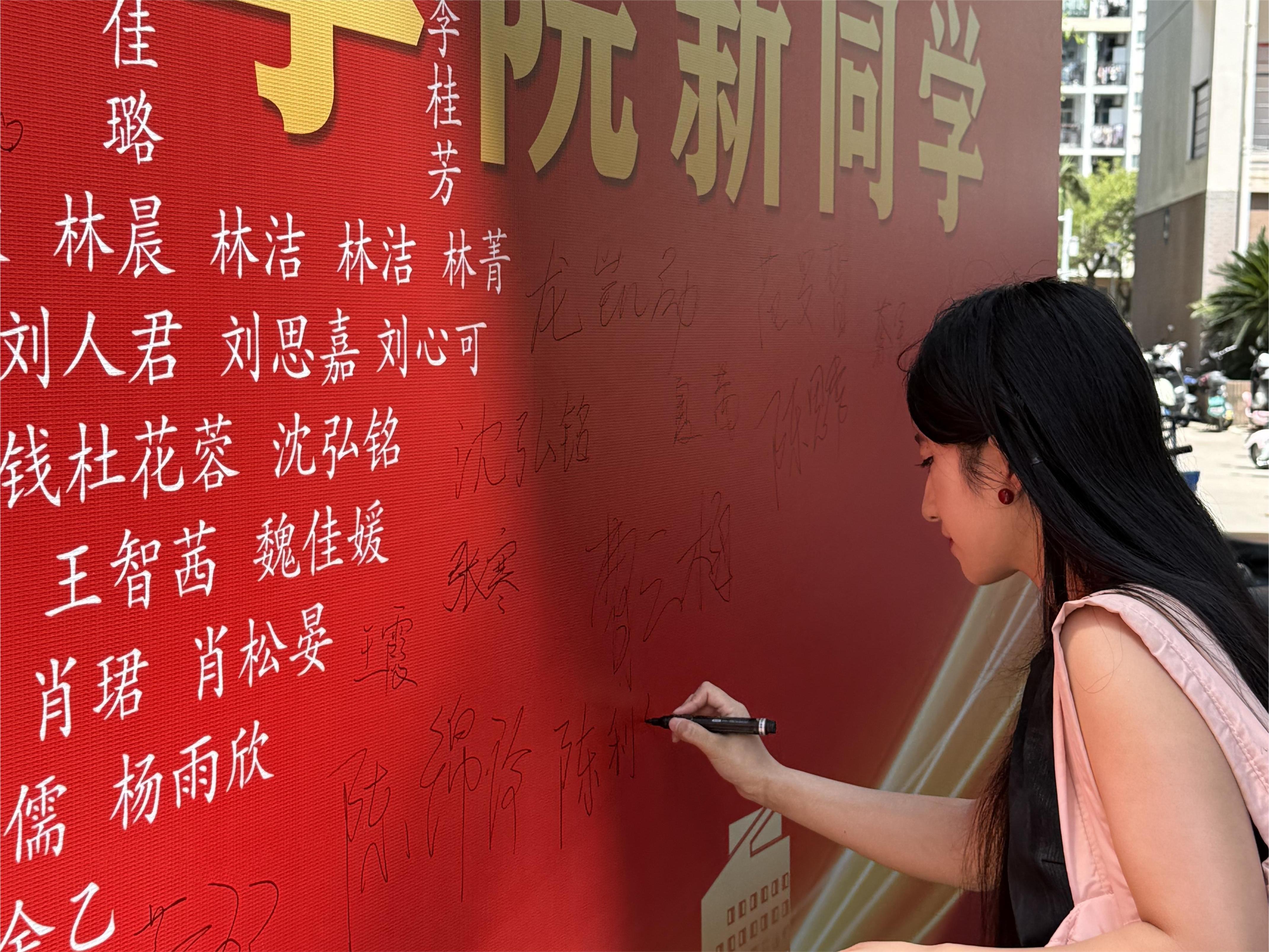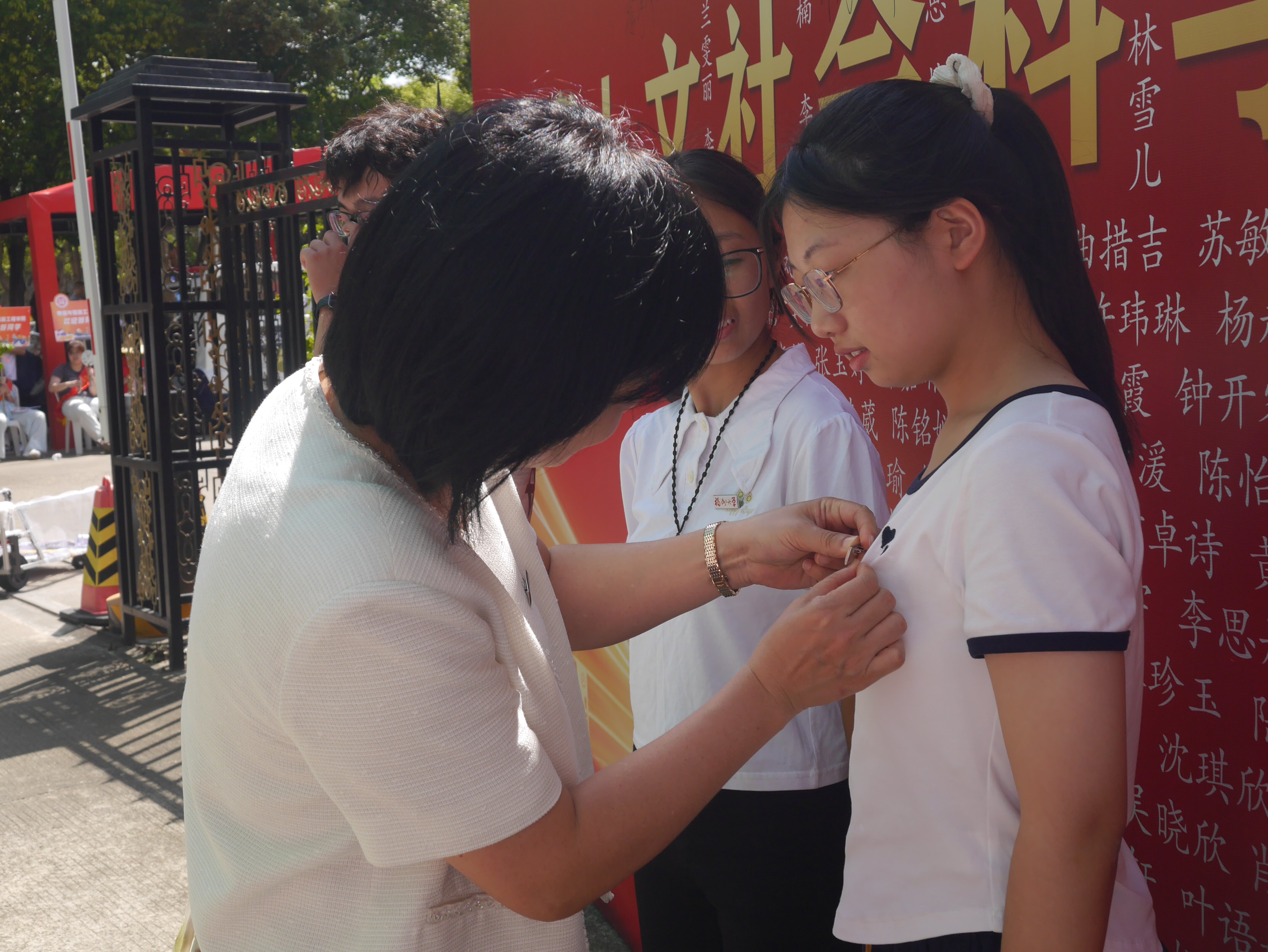 院党委书记刘玮、院长吴慧娟为2025级本科生、研究生新生佩戴校徽红白校徽与姓名墙上的金色字样交相辉映,标志着新生们正式成为学院共同体的一员。