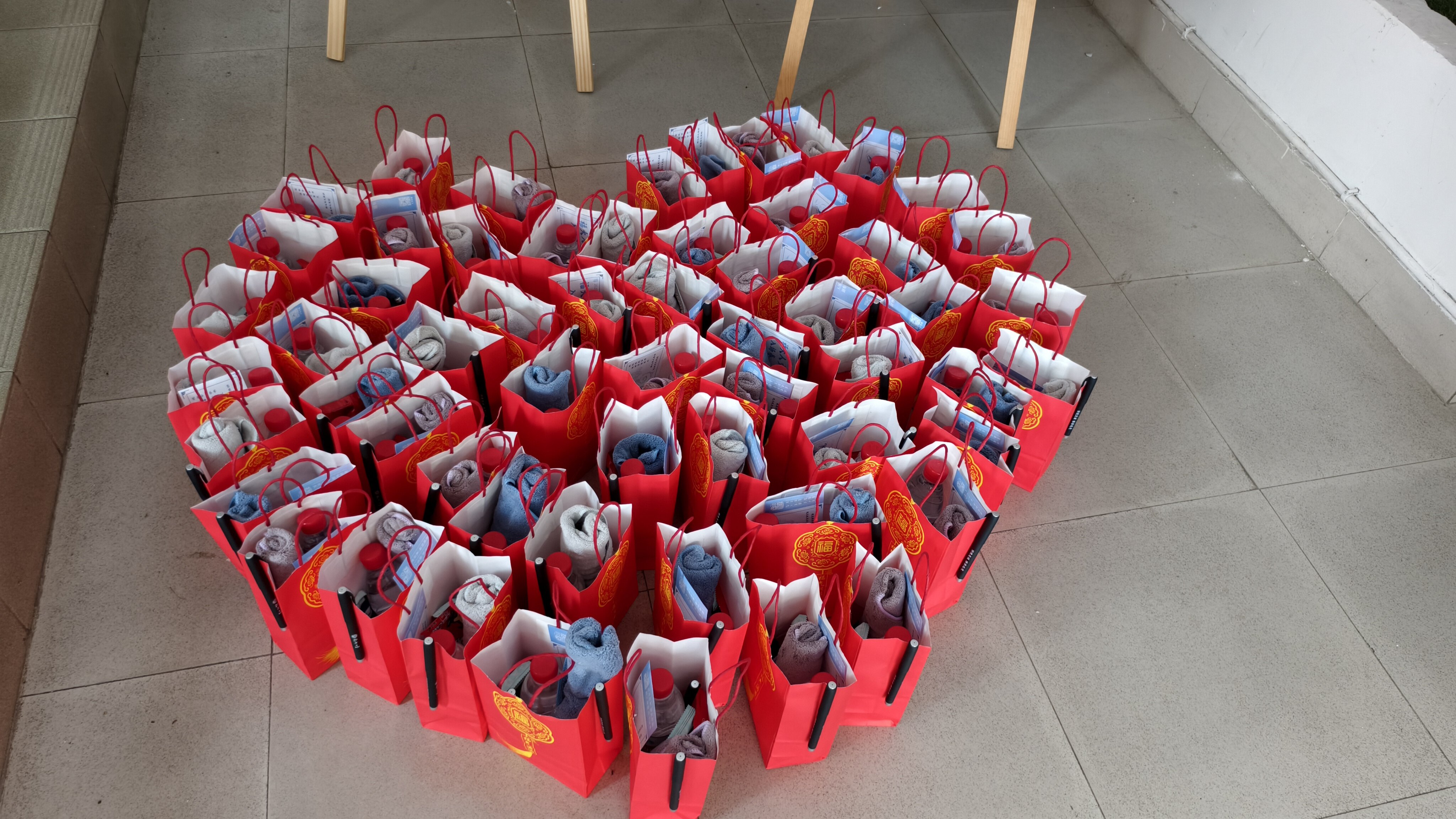 此外,学院贴心为新生准备了包含特色文创、实用寝居用品等在内的新生专属小礼包,特别设置抽奖环节,简单互动为迎新增添了更多欢乐。迎新工作人员指引新生在迎新墙拍照留念,相机定格新生的步入校园的初面孔,张张笑颜将成为未来大学生活的明媚注脚。