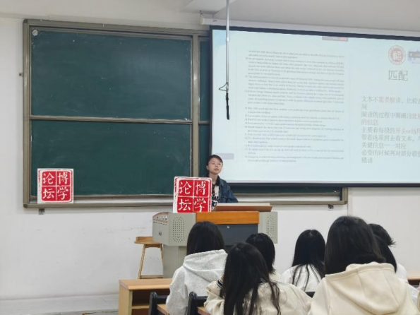 2024级应用心理学专业的许钰涵同学结合真题实战技巧,重点讲解了各题型应对策略与训练方法。她指出选词填空难度最大、建议最后完成,并强调阅读部分不必句句读懂,关键在于关键词定位。此外,她还分享了听力、阅读、写作与翻译的提分技巧,建议大家形成自己的做题节奏与模板体系,以不变应万变。