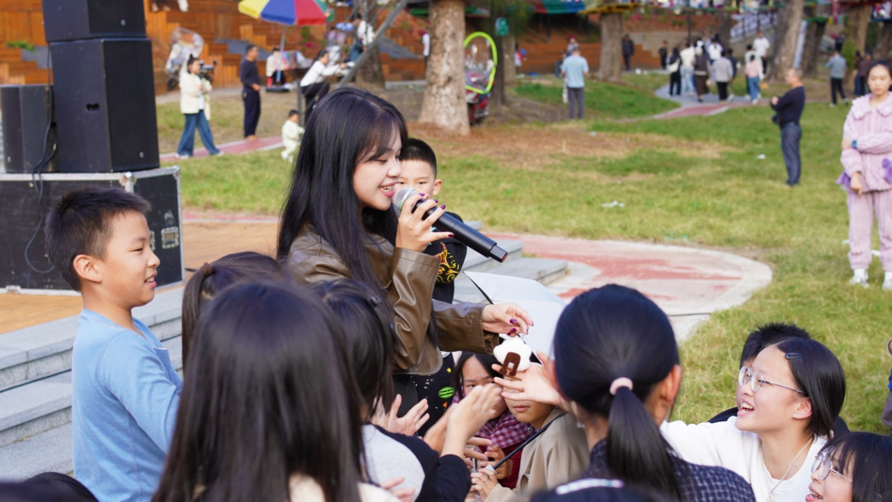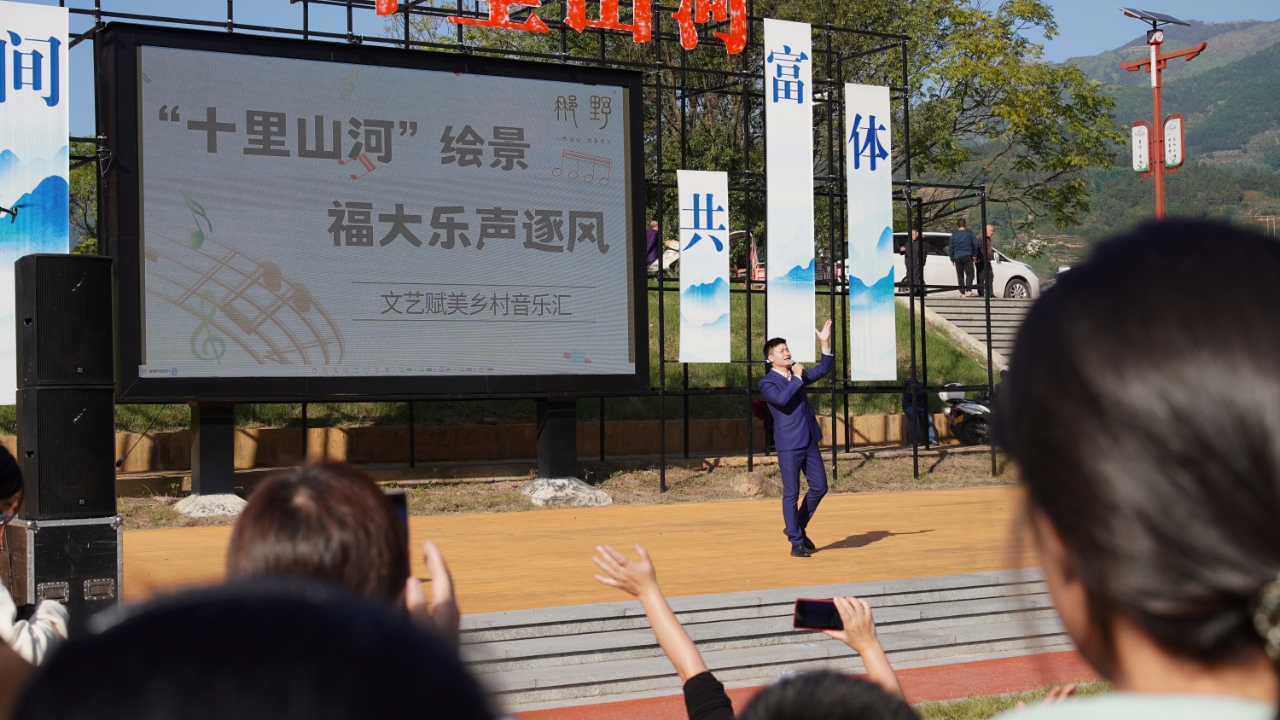 学子赖晶晶、付一航、揭温馨、翁子恒轮番登台,精心演绎多首曲目,优美歌声与真挚情感赢得观众阵阵掌声与喝彩。活动还特设音乐课堂与观众互动环节,观众们踊跃上台展示风采,歌声、笑声、掌声回荡山间,勾勒出文艺赋能乡村的鲜活图景。