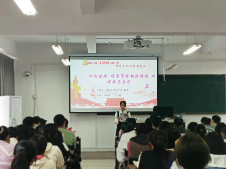 2021级新生作“担当使命,探索革命新道路的艰辛与启示”学习第十九届六中全会报告会讲座。