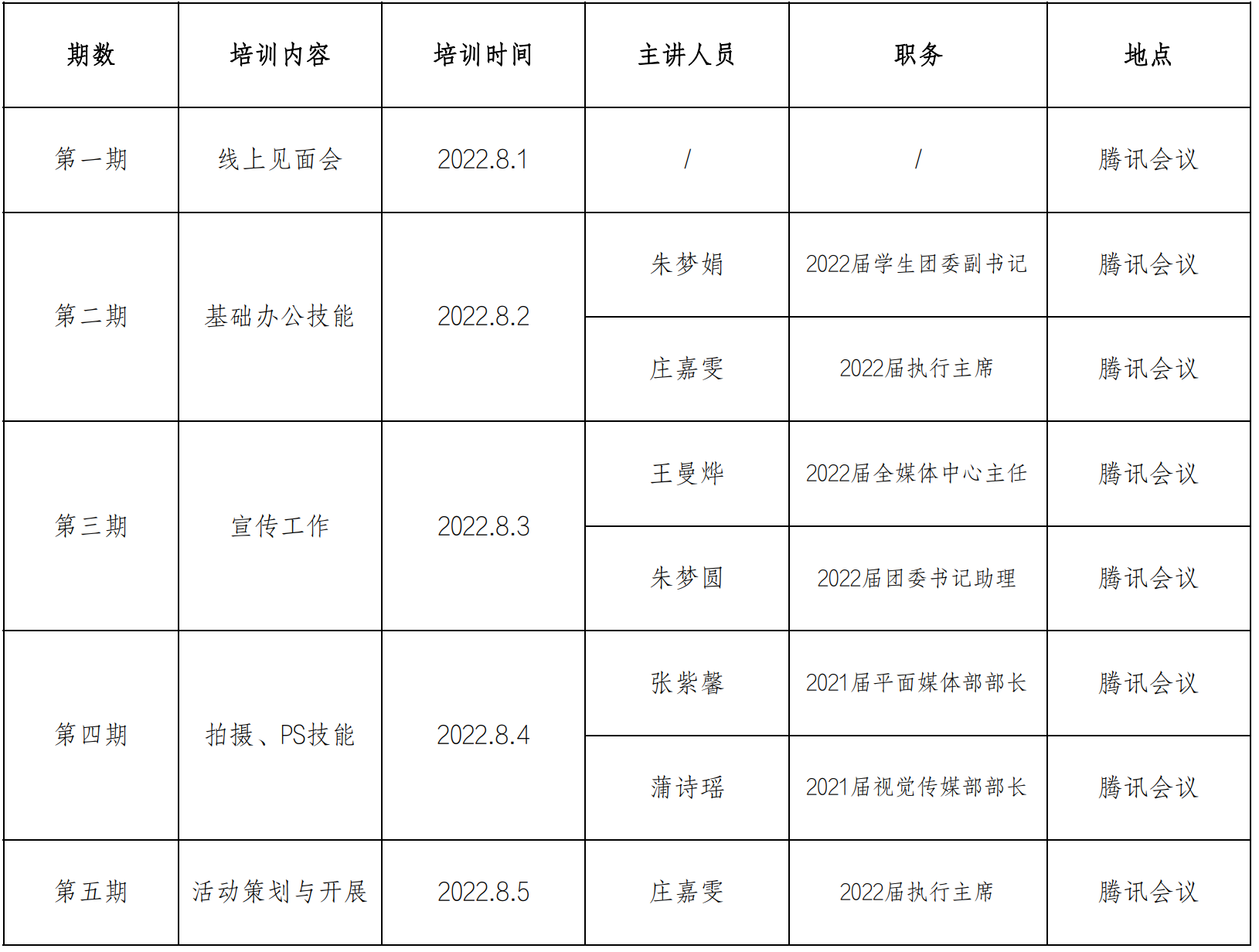 暑期干部培训日程表