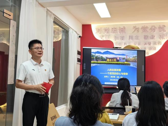 党委副书记陈永福在28号楼学生社区党校为23号楼兼合党支部党员讲授微党课。