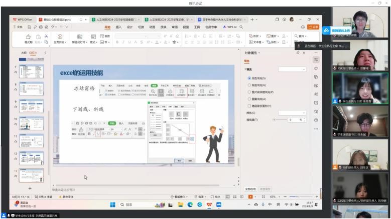 2024届学生会执行主席李思嘉作基础办公技能培训。她引入实例,详细讲解了Word和Excel相关操作技巧。