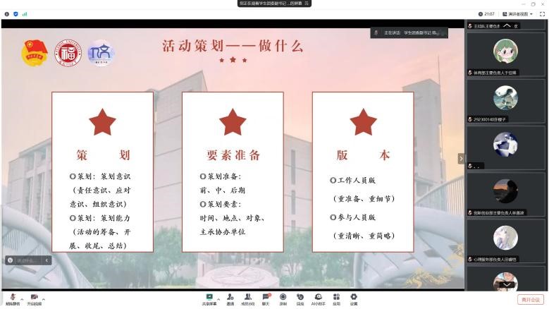 举行2024年暑期学生骨干培训班。本期培训班历时5天,共分为9讲,涵盖宣传技能、活动策划、PPT制作、物资准备等方面内容。学院党委副书记陈永福、团委书记齐朝阳、辅导员丁雅莉、黄宇航、谢婉婷出席开班仪式。