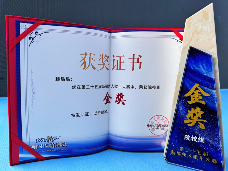 第十一届校园十佳歌手大赛冠军;2021年12月获第九届海峡青年节·海峡两岸大学生声乐比赛金奖;2023年8月获歌咏好年华——第一届“茉莉杯”海峡青年歌手大赛冠军;2023年09月获第十五届两岸大学生校园歌手邀请赛全国冠军;2024世界闽南语金曲颁奖盛典暨海峡两岸闽南语音乐大奖赛全球殿军。