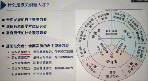 郭建鹏教授首先阐释拔尖创新人才的定义,指出拔尖创新人才包括“全面发展的自主型学习者”“训练有素的学术型研究者”“富有责任的社会型领导者”,并介绍三者所担任的不同角色。接着,他结合专业图例分析影响拔尖创新人才培养的诸多原因。他重点谈及当今高校学子对纸质阅读的漠视,提倡学生广泛阅读,提升综合素质与能力。同时,郭建鹏教授指出,调查研究结果表明,人际关系中的同伴关系对于学生大学收获的贡献最大,大学生应认真经营人际关系,注重提升通用能力。最后,郭建鹏教授对成为拔尖创新人才的基本原则作总结,并倡导大家厚植家国情怀、明确发展目标、保持终身学习。