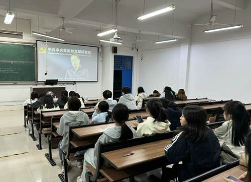 活动现场播放由中共中央党史和文献研究院副院长黄一兵讲解的《如何理解习近平文化思想的重大意义》以及《如何理解习近平文化思想的丰富内涵》两个视频。同学们聚精会神听讲,认真思考并记录笔记。