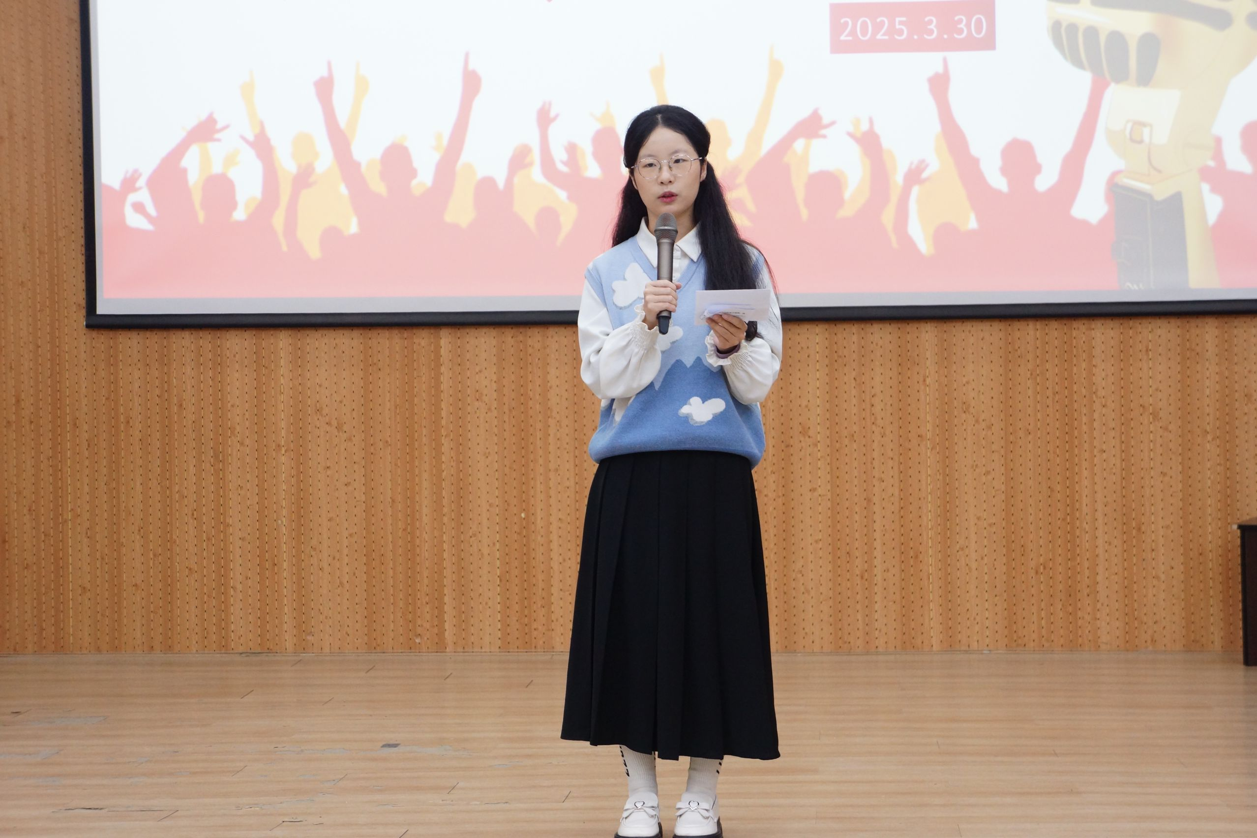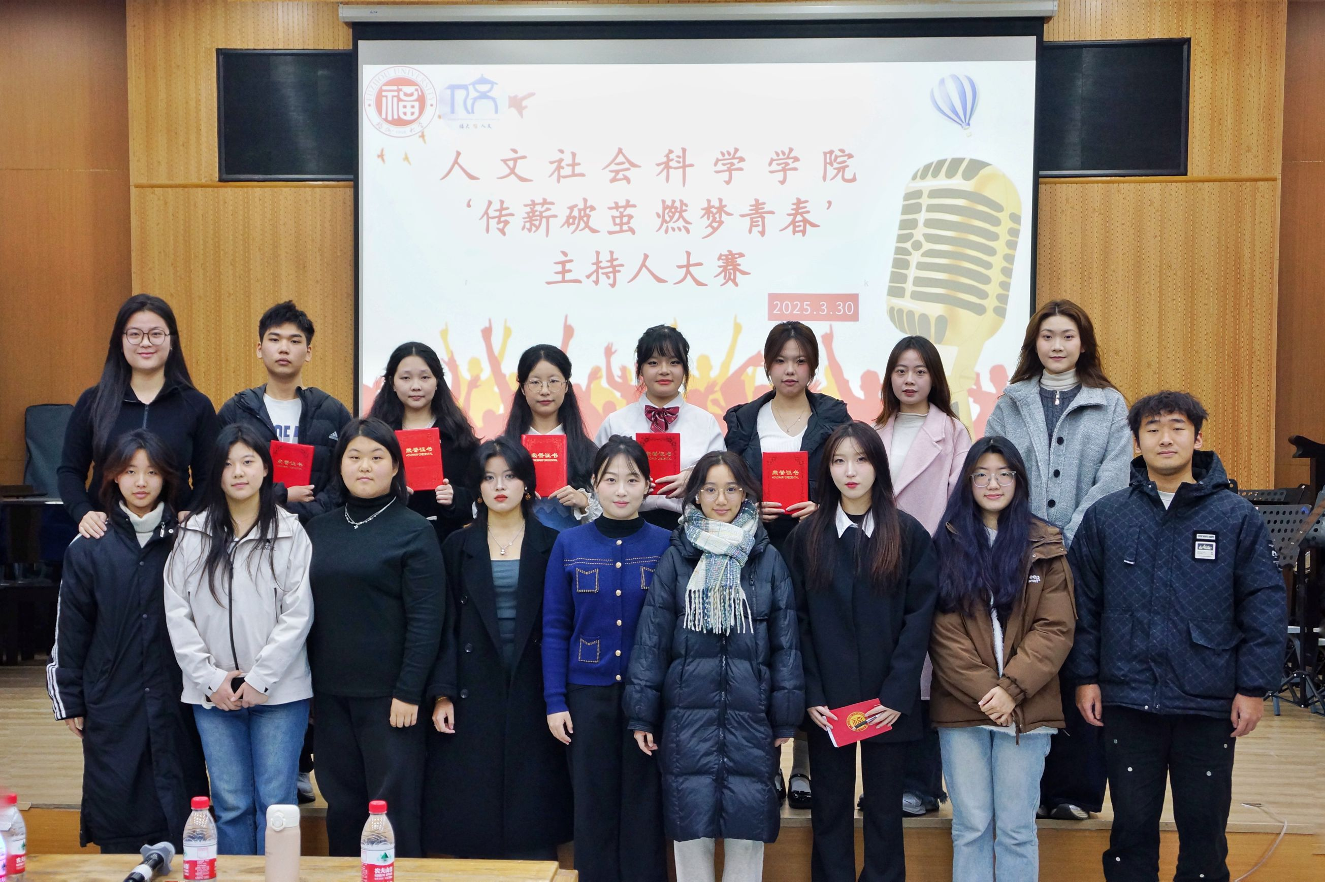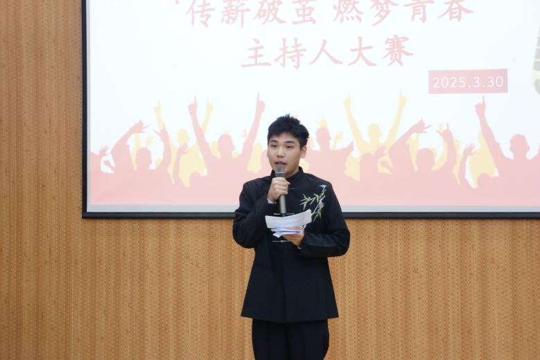于人文艺术实践基地举行以“传薪破茧 燃梦青春”为主题的主持人大赛。