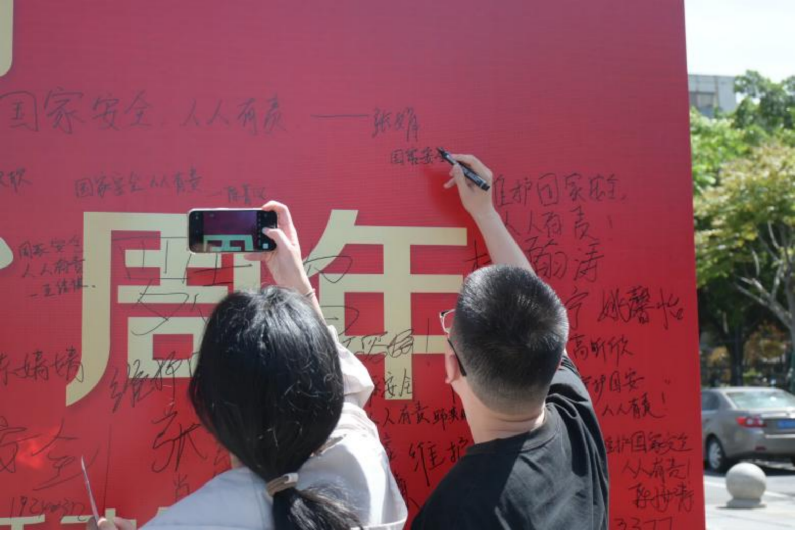 现场共设置五个活动区域。“国家安全有我卫”将法律知识科普与趣味游戏结合,展示维护国家安全的重要性;“国安种类我了解”和“国安知识大闯关”运用趣味答题普及国家安全知识;“十年历程国家安全拼拼看”通过拼图形式回顾近十年国家安全成就;“保卫安全我有名”环节中,同学们在墙上签名,写下维护国家安全的承诺。