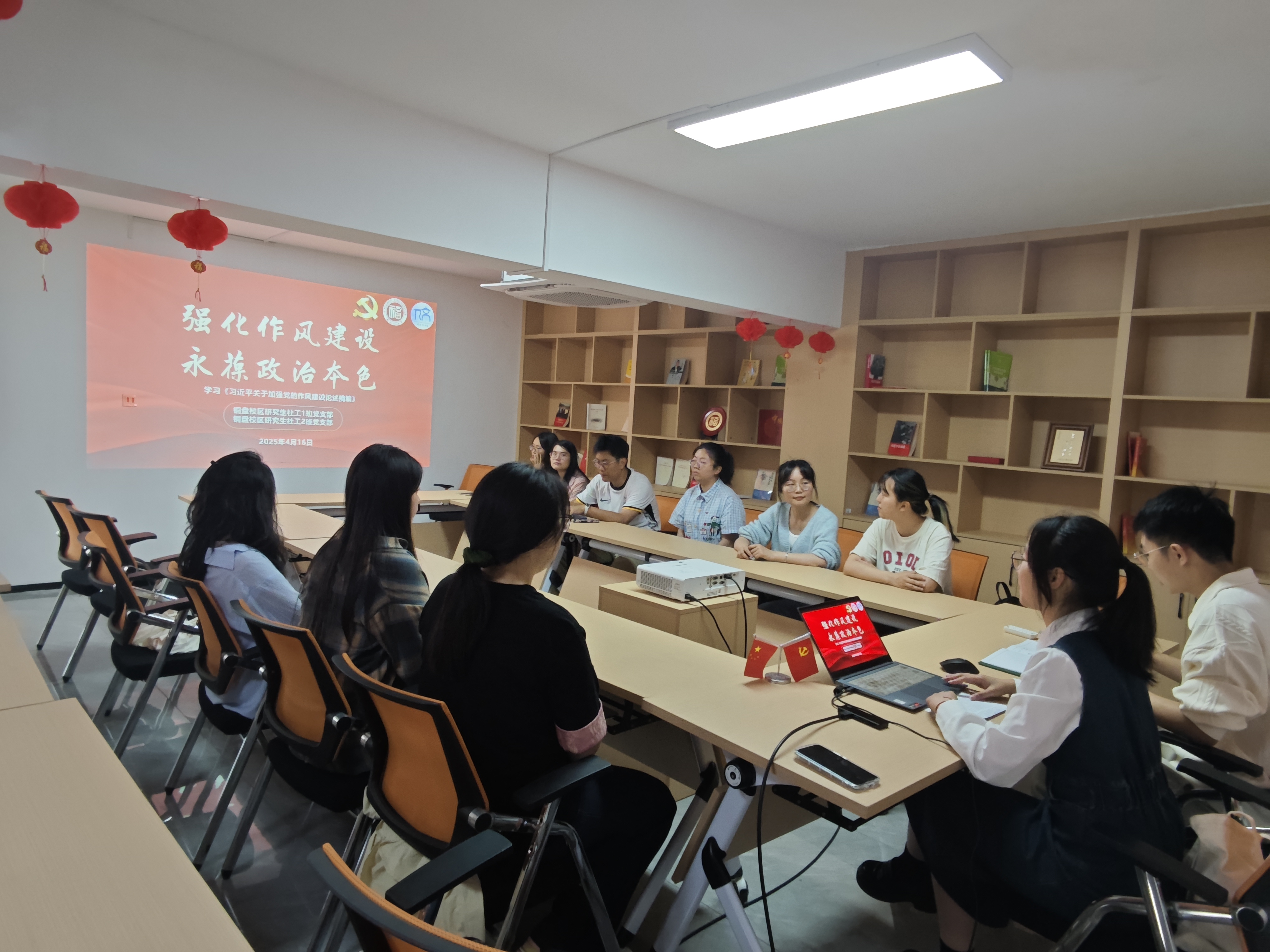 围绕深入贯彻中央八项规定精神学习教育,支部书记竺晨露同志、王淏同志带领支部党员学习《习近平关于加强党的作风建设论述摘编》中的重要论述。会议强调,一要注重纪律作风,严以修身律己、厉行勤俭节约;二要密切联系同学,让工作服务常态化、长效化;三要呼应时代要求,用好先进技术,不断创新学习和工作方法。