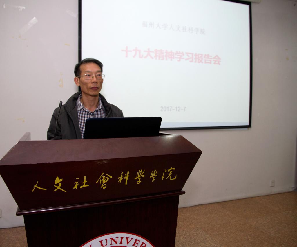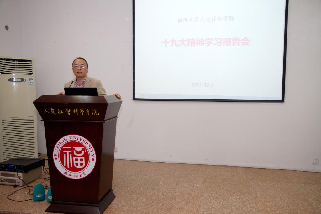 党委委员、院长吴兴南教授作“习近平社会治理创新理论的科学内涵及精神实质”辅导报告。全院教职工和部分学生党员、入党积极分子约120人参加了报告会。报告会由院党委林秋生书记主持。