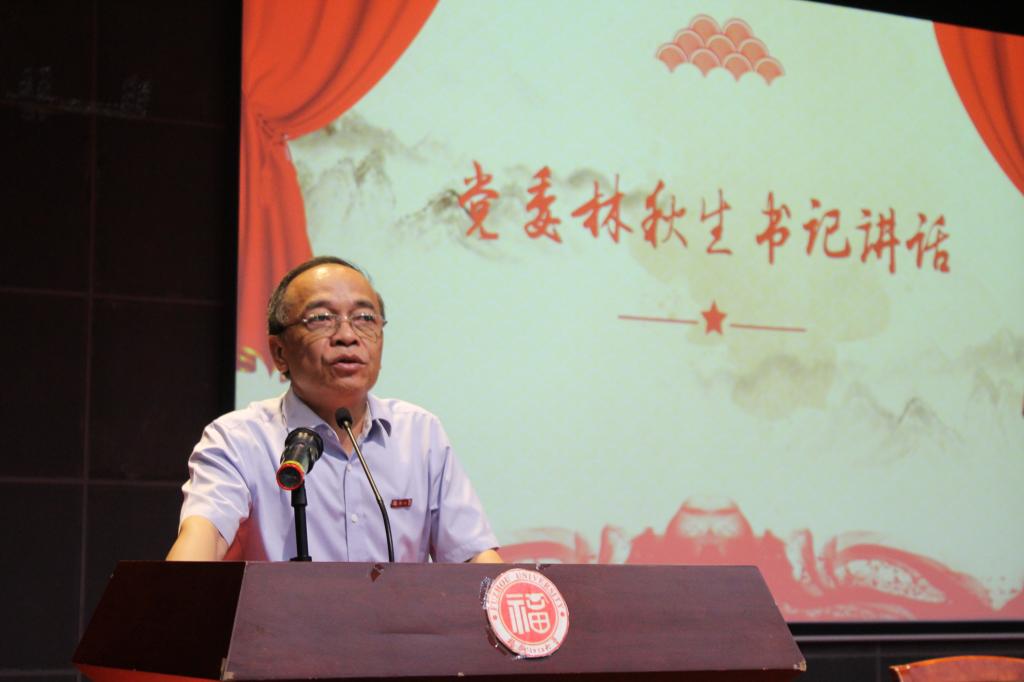 院党委林秋生书记在典礼上发表了热情洋溢、充满惜别之情的讲话。他代表学院党政领导和全体教师向2018届全体毕业生表示最热烈的祝贺,向他们的父母、老师等致以衷心的感谢和崇高的敬意。他深情回顾了同学们在校期间的美好时光,语重心长地祝福和希望同学们走向社会,行稳致远:一是要不断学习,提升自己;二是要诚恳做人,踏实做事;三是要不忘初心,勇于追梦。