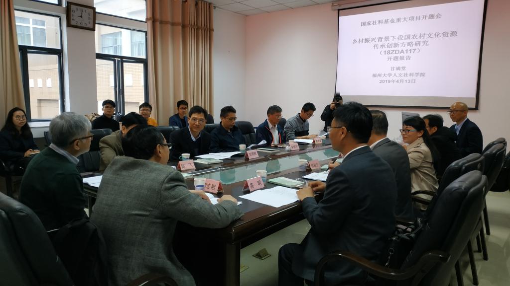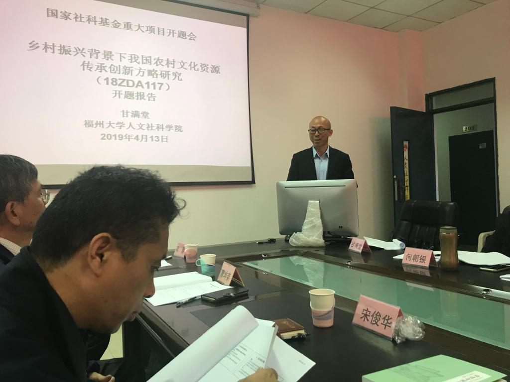 社会学系甘满堂教授主持的2018年度国家社科基金重大招标项目“乡村振兴背景下我国农村文化资源传承创新方略研究”在学院204室举行,副校长黄志刚教授出席开题论证会。