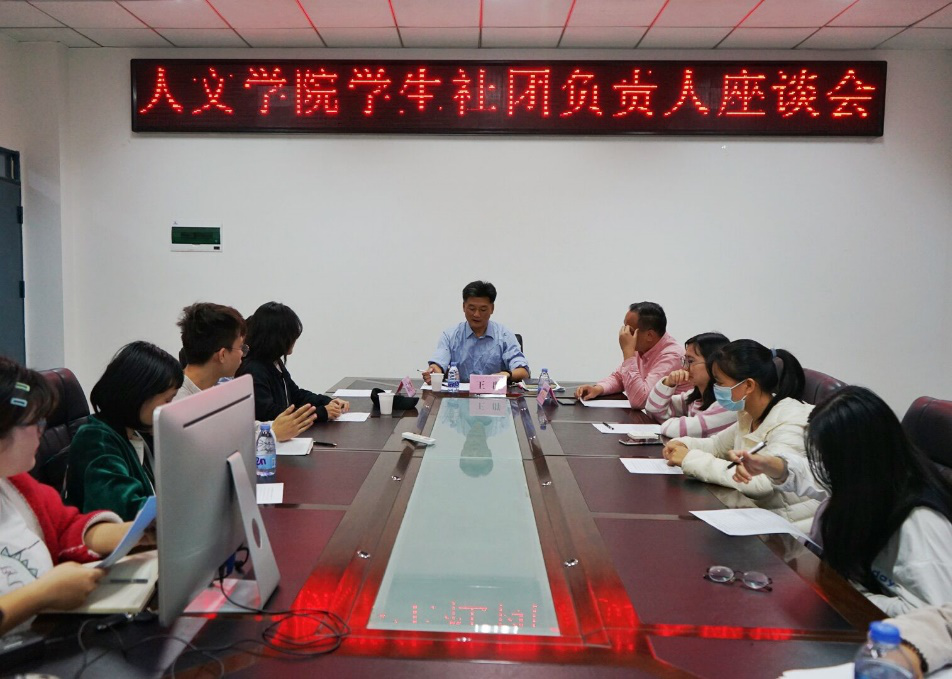齐朝阳老师对王群书记的发言做了简要的解读与补充,他提出社团负责人要做好自身定位,同时各社团要做好特色活动,展现社团风采。最后他让各社团负责人对社团概况社团这一个学期已经举办与计划举办的活动做了简要总结。