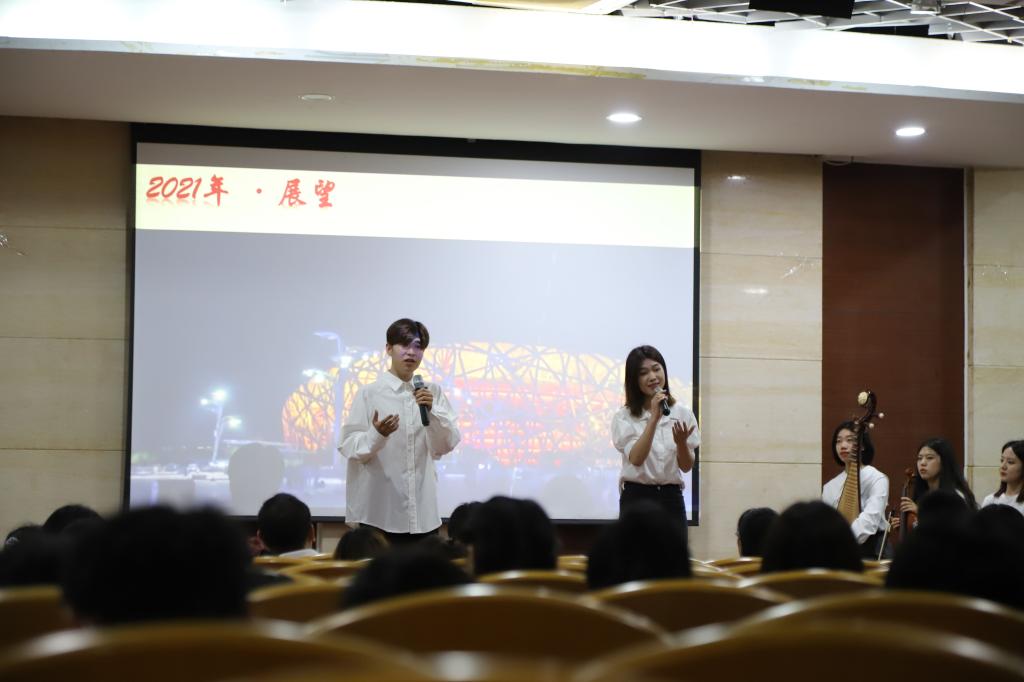 为了使班会活动更加多彩,效果更加突出,各班纷纷采取了多样化的形式开展主题班会活动:“三句半”游戏歌颂中国共产党、诗歌朗诵、模拟2020年感动中国颁奖典礼、党史知识竞答,也有音乐学的同学们自己编曲作词,创作原创歌曲,各专业结合自己的专业知识,为同学们带来了一场精彩的班会展示活动。更是有班级以书信的形式与党交流对话,将百年来中国的崛起和发展娓娓道来,不禁让人沉浸其中,感人泪下。