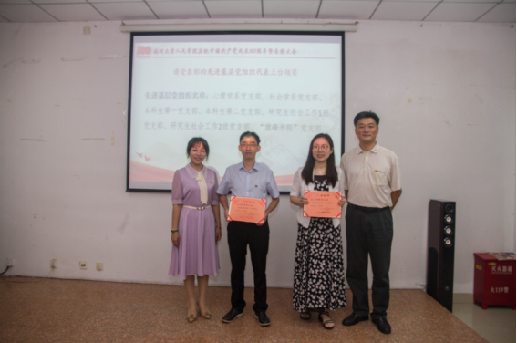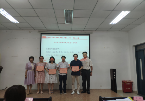 庆祝中国共产党成立100周年暨表彰大会在学院202报告厅举行。院党委书记王群同志、院长吴慧娟同志、副院长梁桂芳同志、院工会主席魏德毓同志、院纪检委员赵陵波同志出席会议,院党委副书记郑志刚同志主持会议。