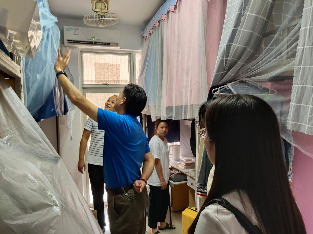 团委齐朝阳书记、辅导员房菁前往学生宿舍走访慰问回校、在校学生。
