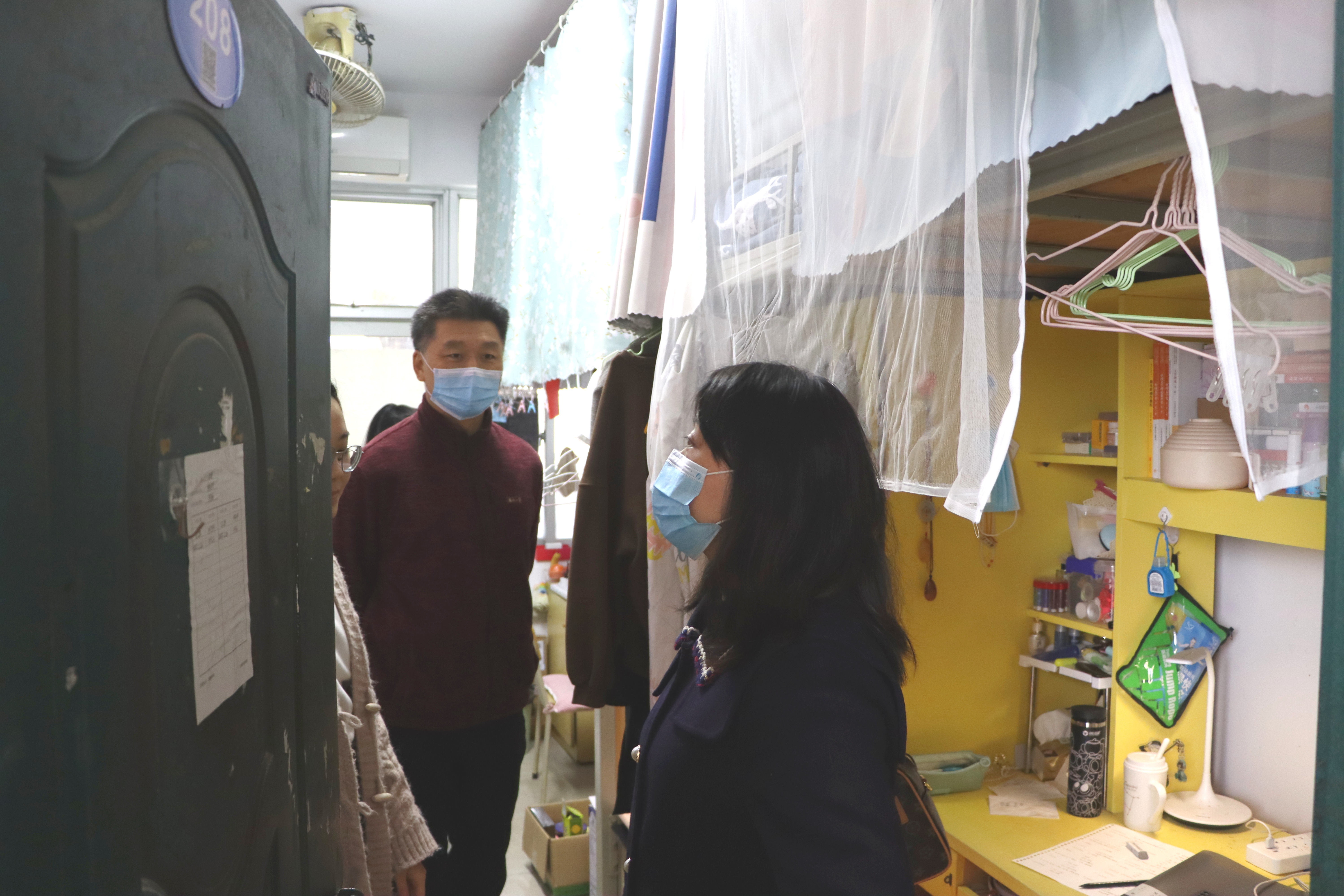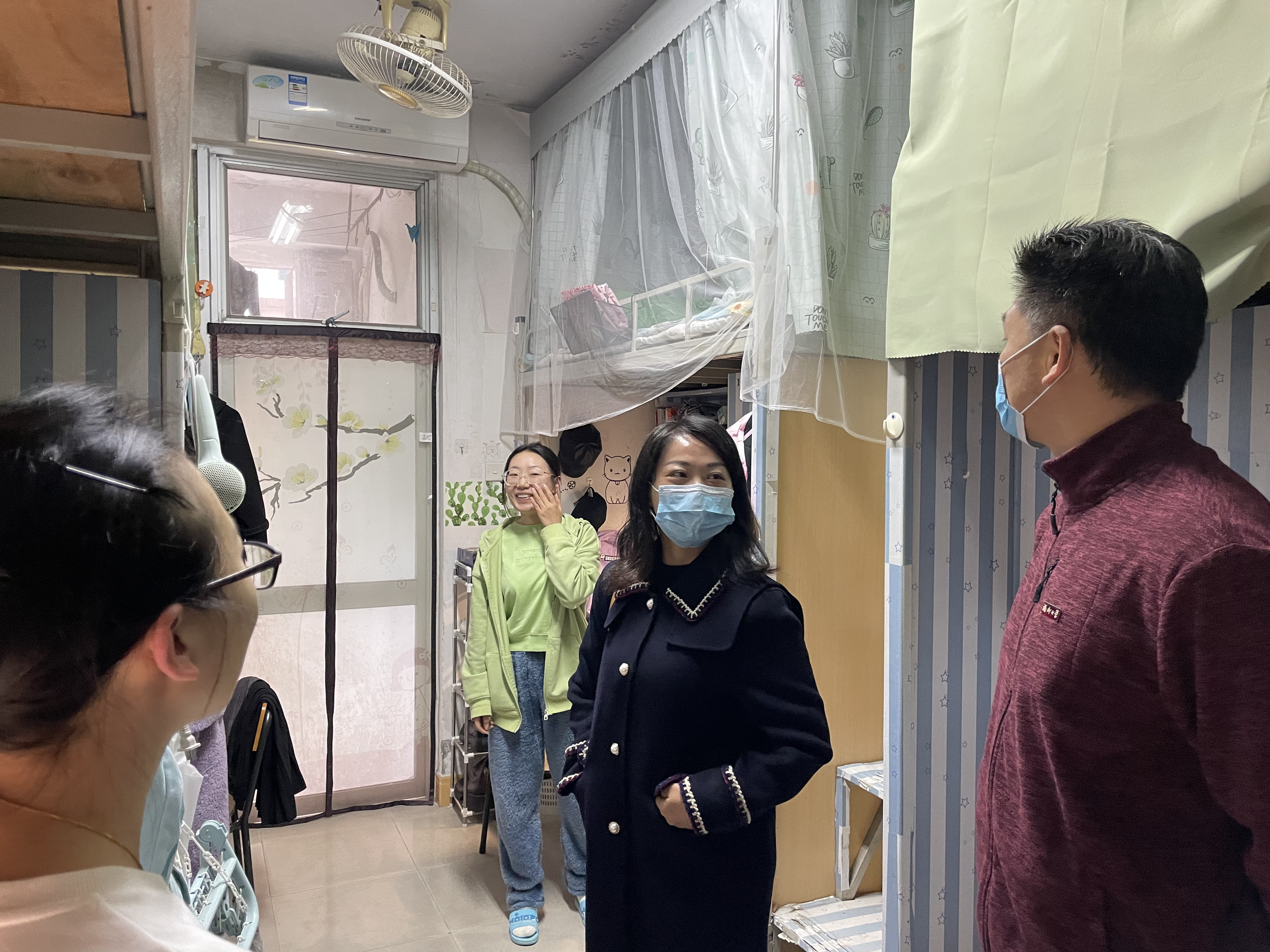 党委王群书记、院长吴慧娟、党委副书记陈永福深入旗山校区学生公寓检查线上教学情况,学院团委书记齐朝阳、兼职辅导员李妍娇一同前往。