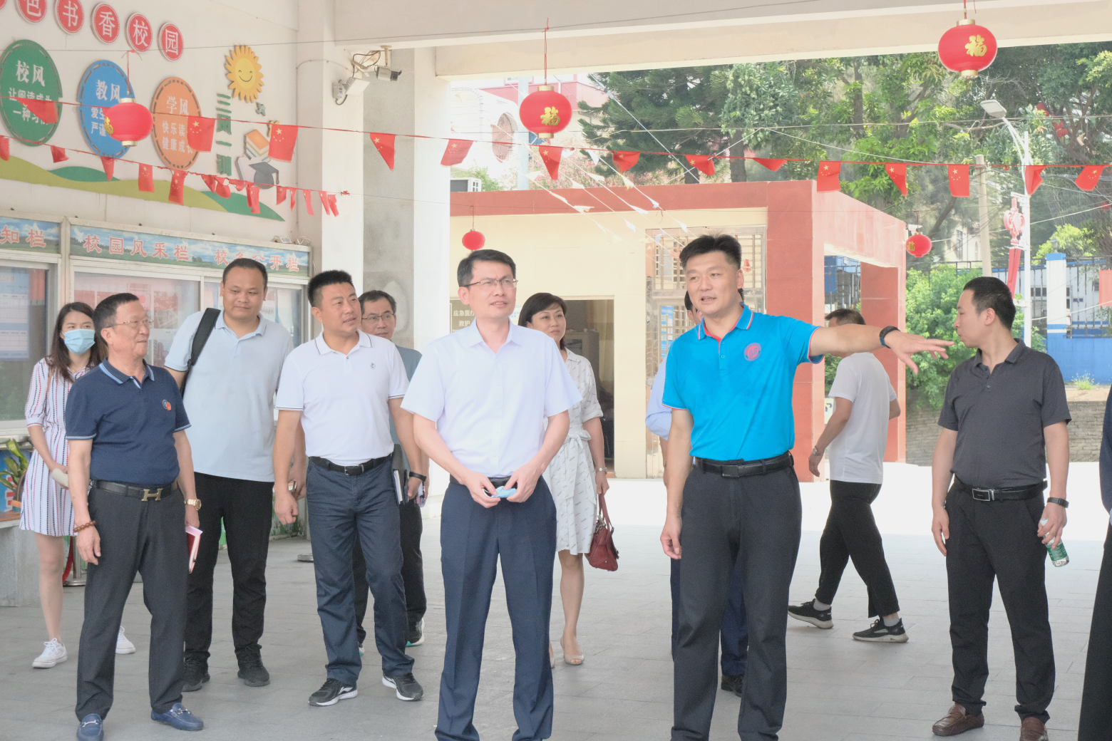 校党委黄身勇副书记一行首先来到浔头小学,观看了实践队员正在开展的中华优秀传统文化课程,与在场实践队员和小朋友们进行了深入交流,深入细致地了解了实践队工作情况,以及参加活动的当地失依儿童代表学习生活情况。