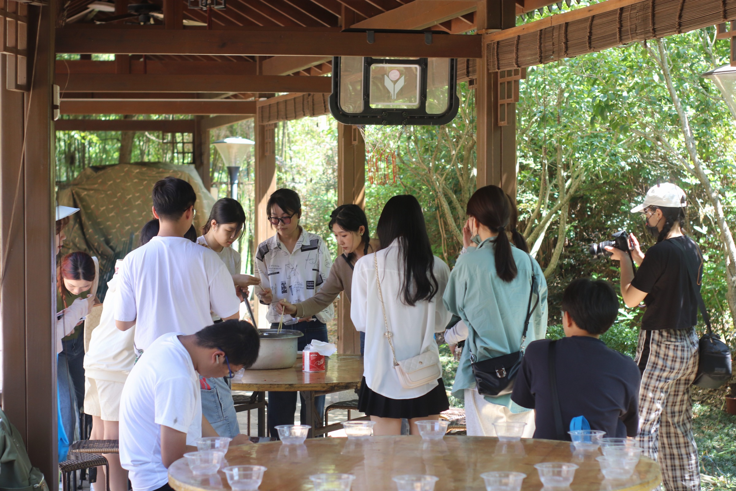 共享午餐,分享劳动心得。从茶园满载而归后,大家一同准备午餐场地。摆放桌椅、分配餐具,大家分工合作,短时高效完成布置任务。在享用午餐的同时,同学们积极分享采茶心得,现场洋溢着欢声笑语。一顿简单却难忘的午餐,承载着同学们共同劳动、共享经验的喜悦。