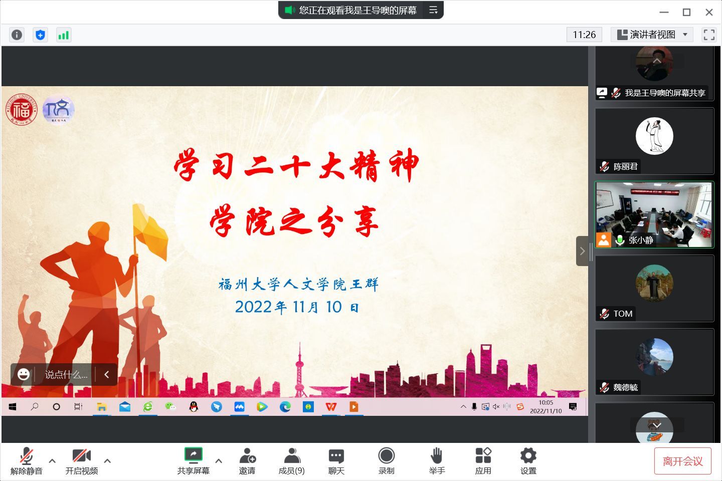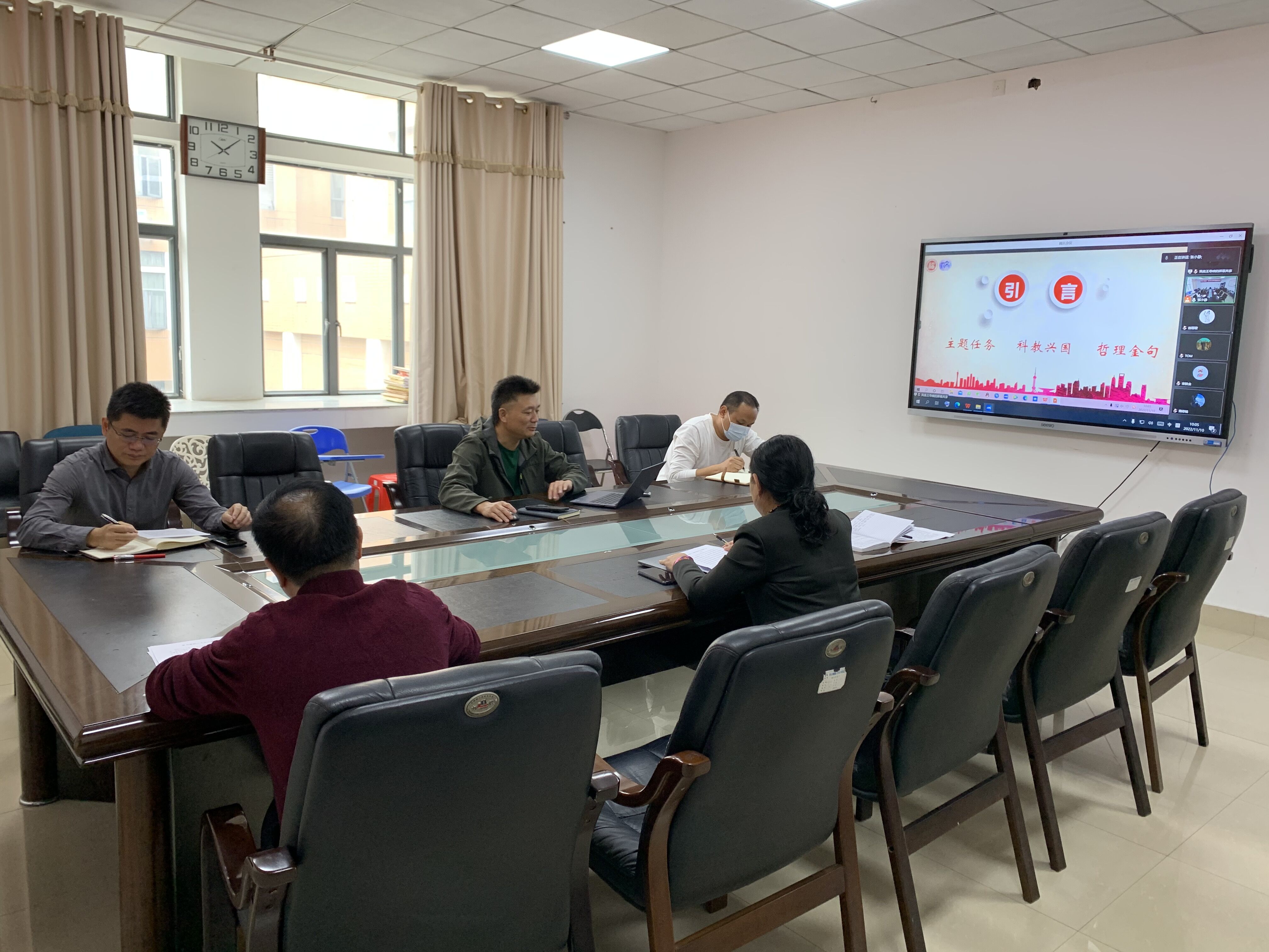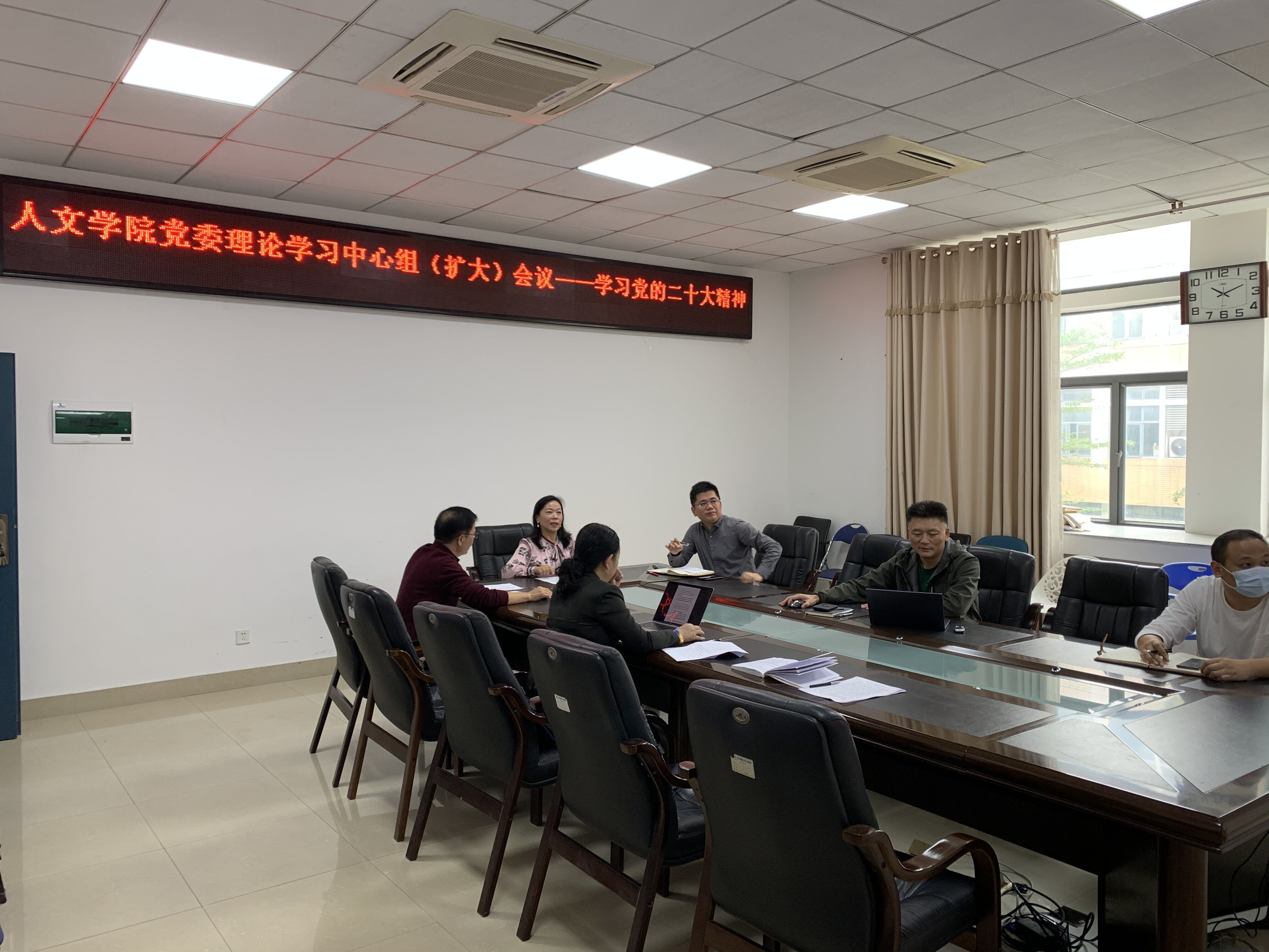 楼204会议室以线上线下相结合的方式召开党委(扩大)会议暨党委理论学习中心组学习会,集中学习党的二十大精神。全院中层以上干部参加了会议,会议由学院党委王群书记主持。