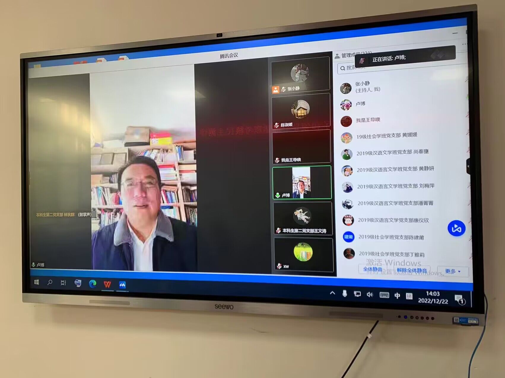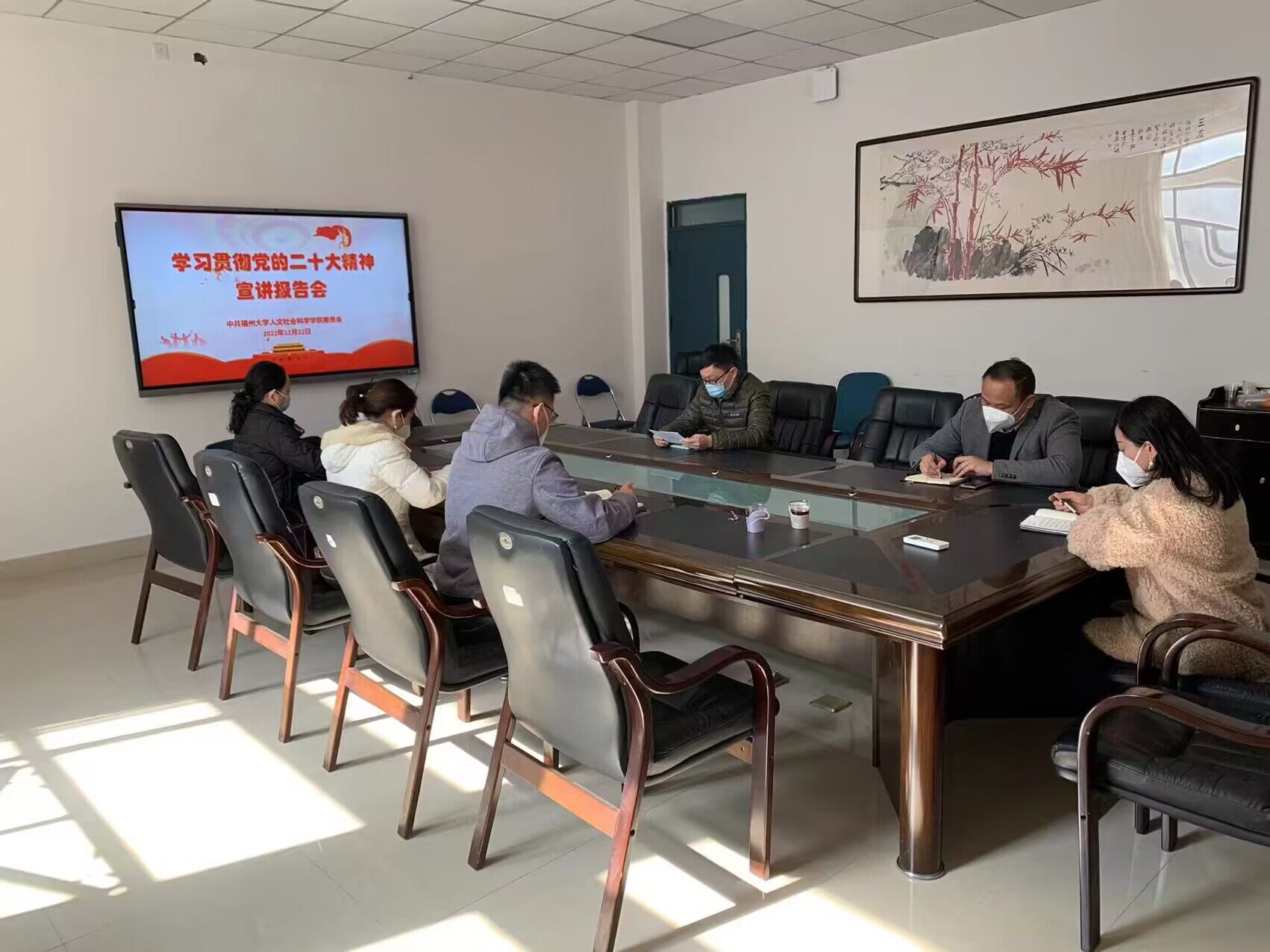 各党支部全体党员师生通过线上线下结合形式参与本次报告会。