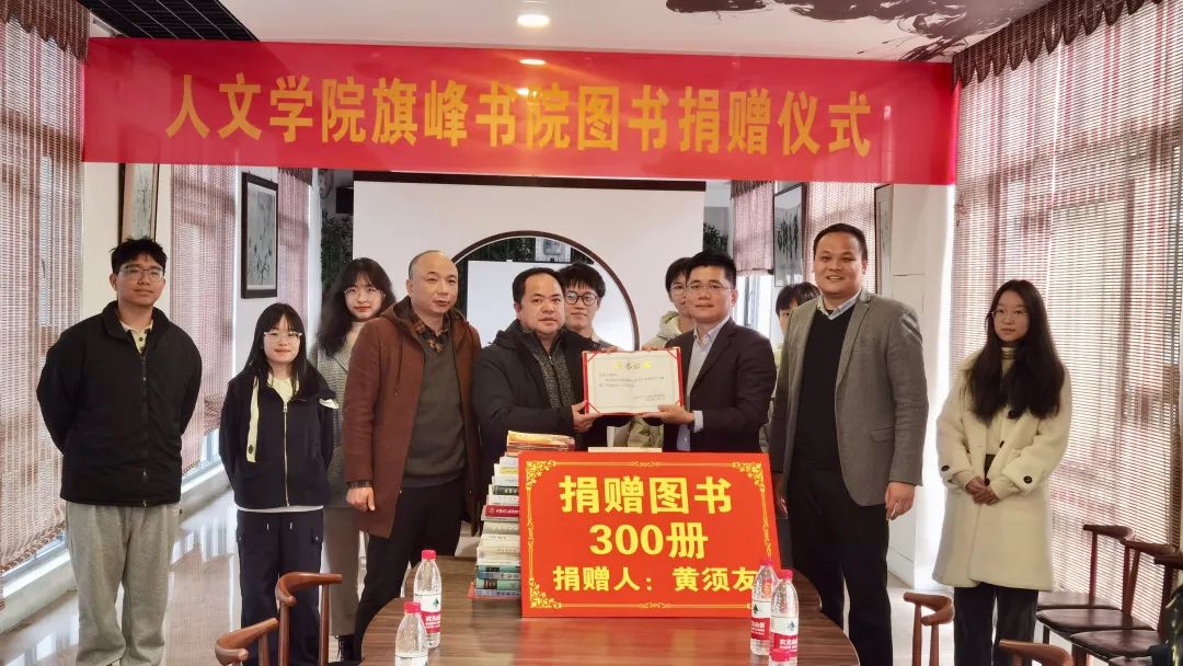 在传统文化馆举行旗峰书院图书捐赠仪式。福建人民出版社副编审黄须友老师、学院党委副书记陈永福教授、学院工会主席魏德毓副教授、学院团委书记齐朝阳老师等嘉宾出席活动。旗峰书院学生代表参加此次活动。