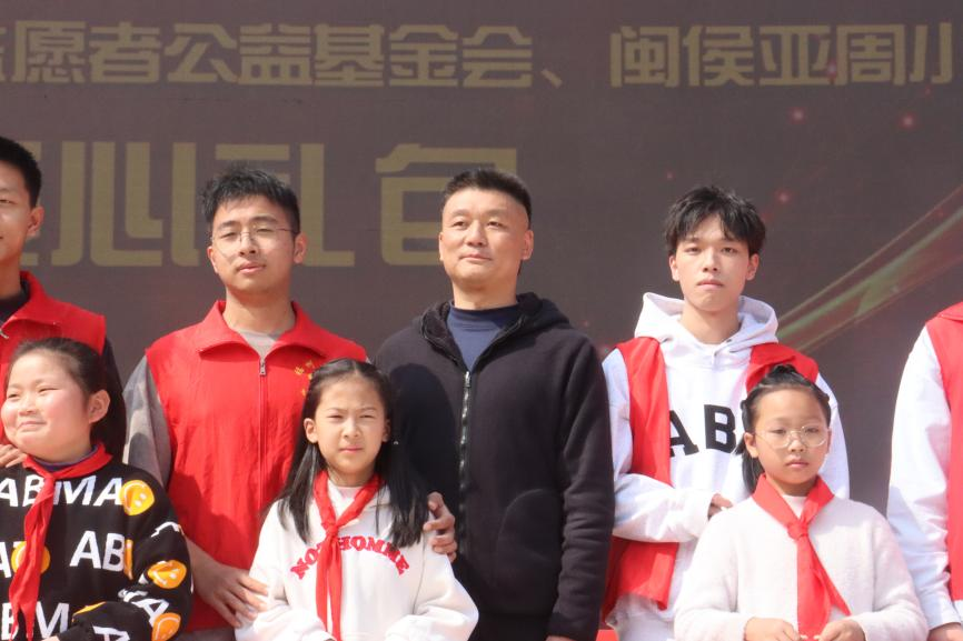 、福建省志愿者公益基金会、闽侯亚周小学三方承办的捐赠仪式。仪式上,志愿者们向小朋友们送出爱心大礼包,王群书记同其他代表一起按下开启福大志愿新纪元的按键,吹响人文志服新征程的号角。
