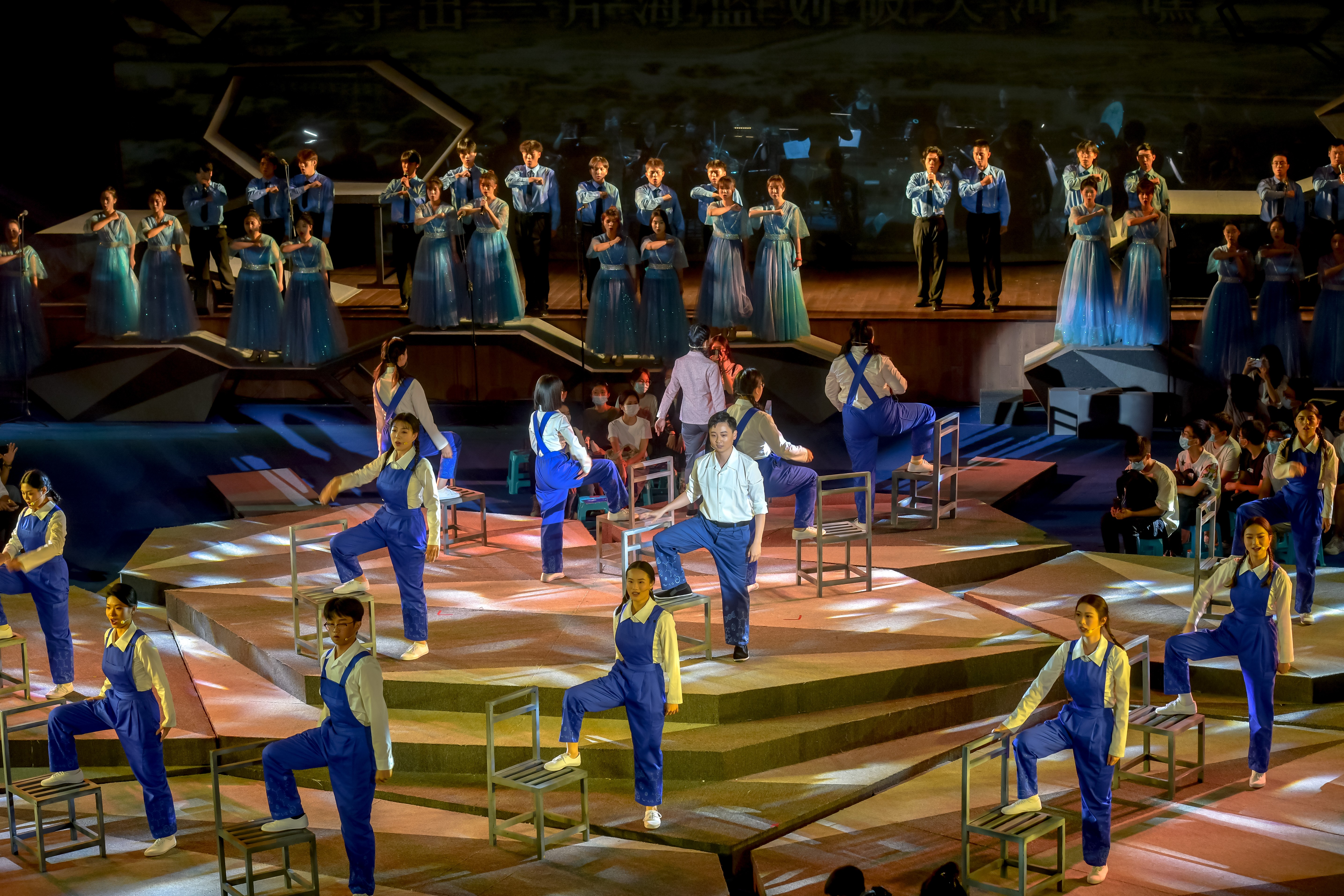 各学院、机关部(处)领导成员出席,全校约三千名师生来到现场观看演出。