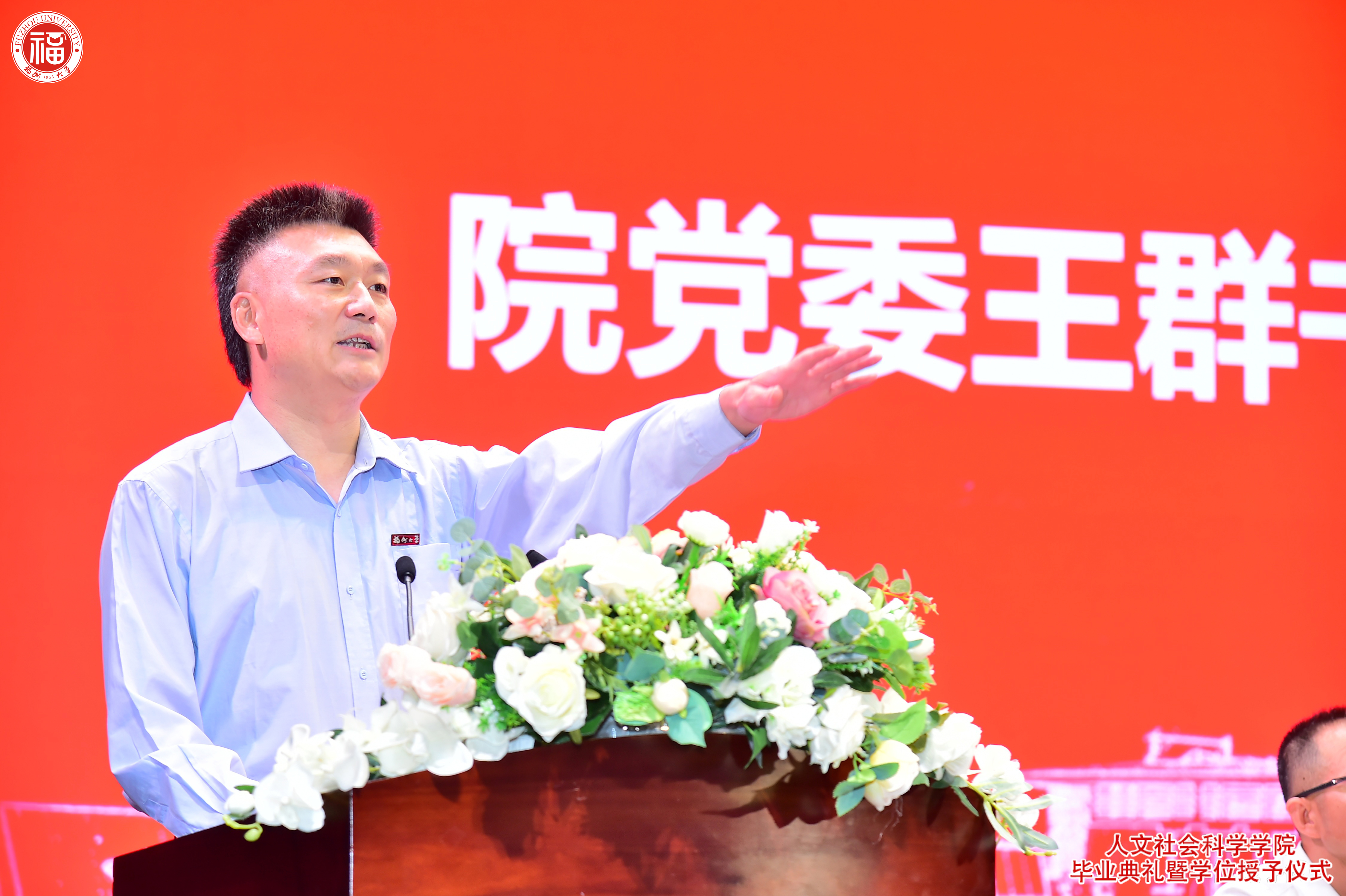 同祖国共同度过的重要时刻,结合新时代国家对青年学子的期待与期盼,对毕业生们提出三点希望:一是要博览善学、勤奋学习,努力扩大知识面,德智体美劳全面发展,成为中国特色社会主义建设的接班人;二是身心优良、强健体魄,塑造良好的品格和身心优良的体魄,与自己和睦,与他人和谐,以开阔的心胸面对生活的挫折;三是要不忘初心、志存高远,把自己的初心和梦想融入到伟大的中华民族复兴之路中,做中华民族伟大复兴中国梦的建设者。他希望人文学子用“行到水穷处,坐看云起时”的乐观豁达和“醉里挑灯看剑,梦回吹角连营”的家国情怀,在实践中不断感受,成就自我、成就他人,带着无所畏惧的勇气和满怀豪情的信心勇往直前,奔向未来。
