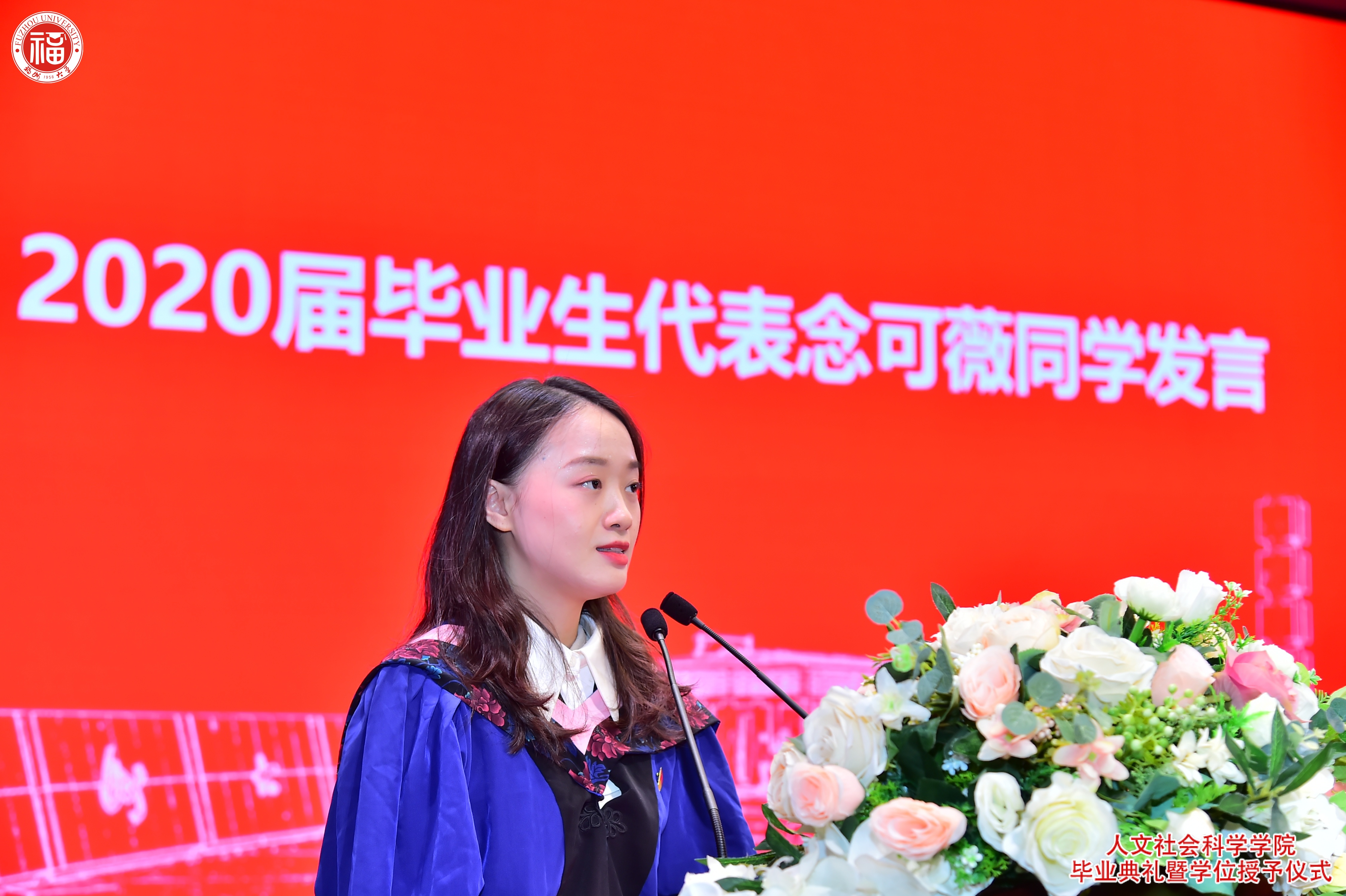 毕业典礼在诗朗诵《种子》和庄严的国歌声中拉开序幕。随后,2020届毕业生代表念可薇、2023届毕业生代表彭雯琪发言,她们从个人经历和初心梦想分享了自己大学四年的感悟,号召人文毕业生学子坚守初心、勇于担当,始终牢记起点中文网