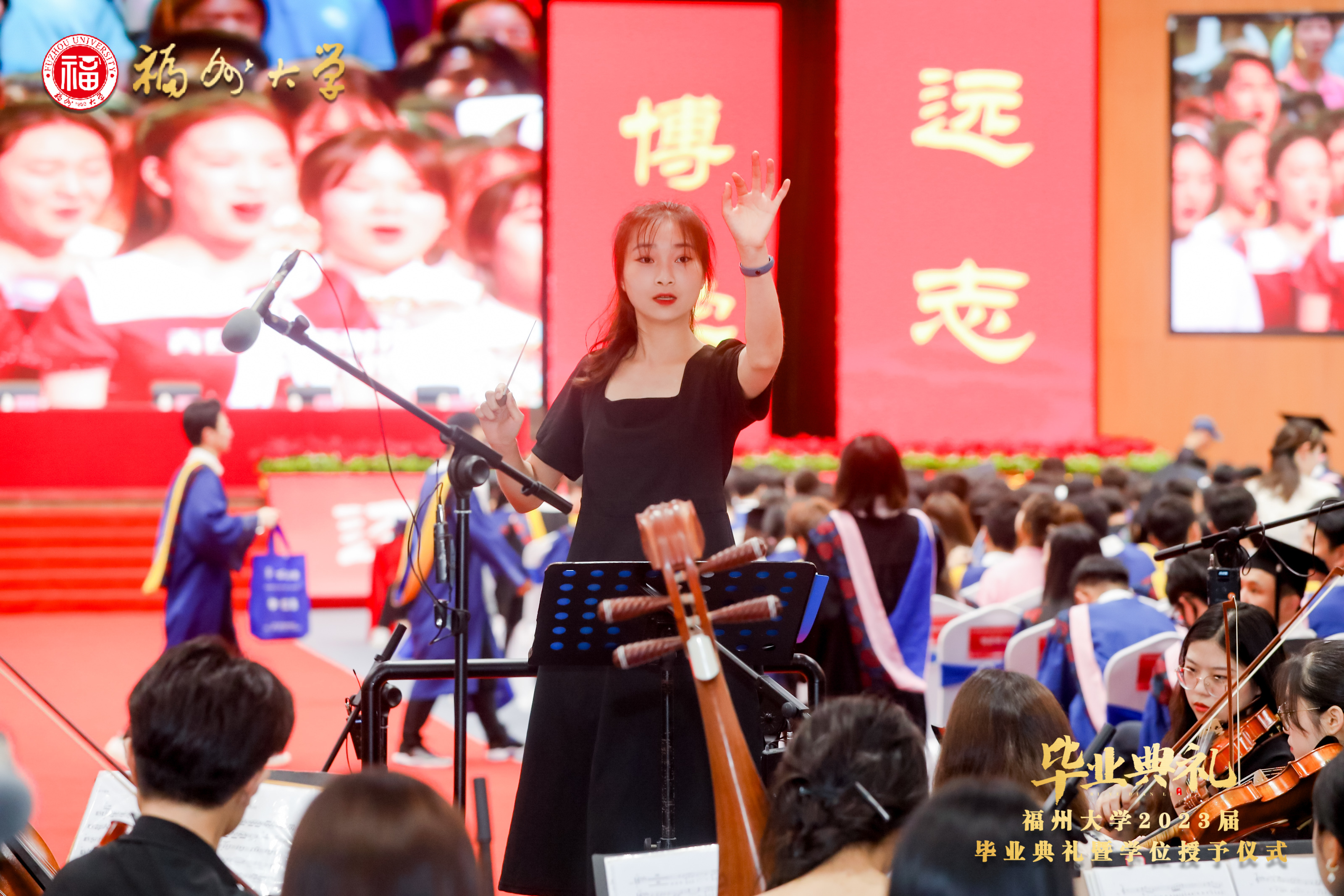 音乐学系承办本次典礼现场音乐表演,王昕野老师担任交响乐团指挥,部分乐团成员与合唱团成员共同为毕业盛会献上青春之歌。