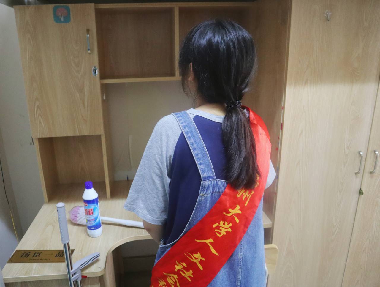8月25日下午,志愿者们前往铜盘学生生活区1号楼、6号楼、7号楼各新生宿舍,进行卫生打扫。志愿者们擦拭桌面,清扫地板,让宿舍环境更加整洁。