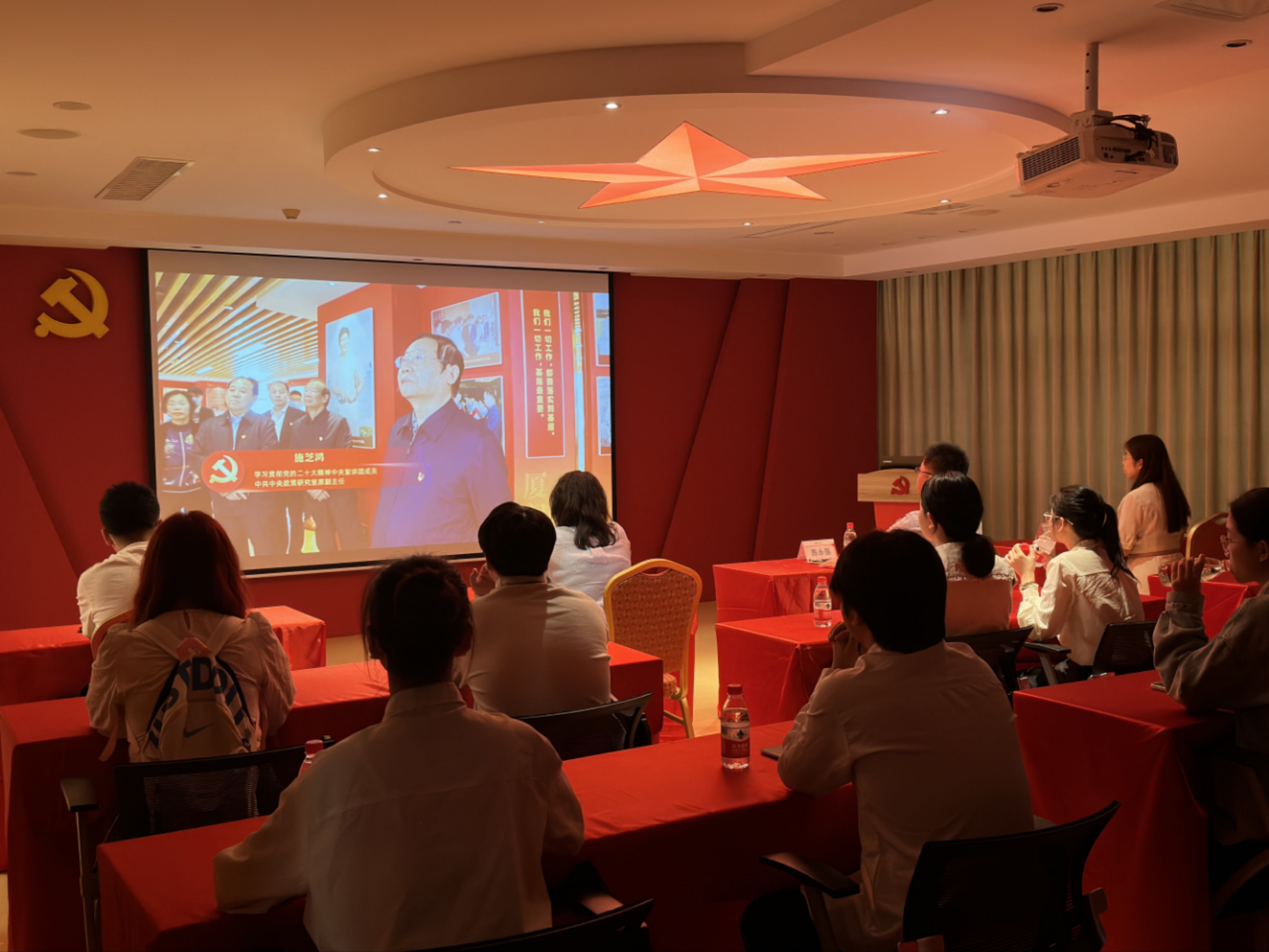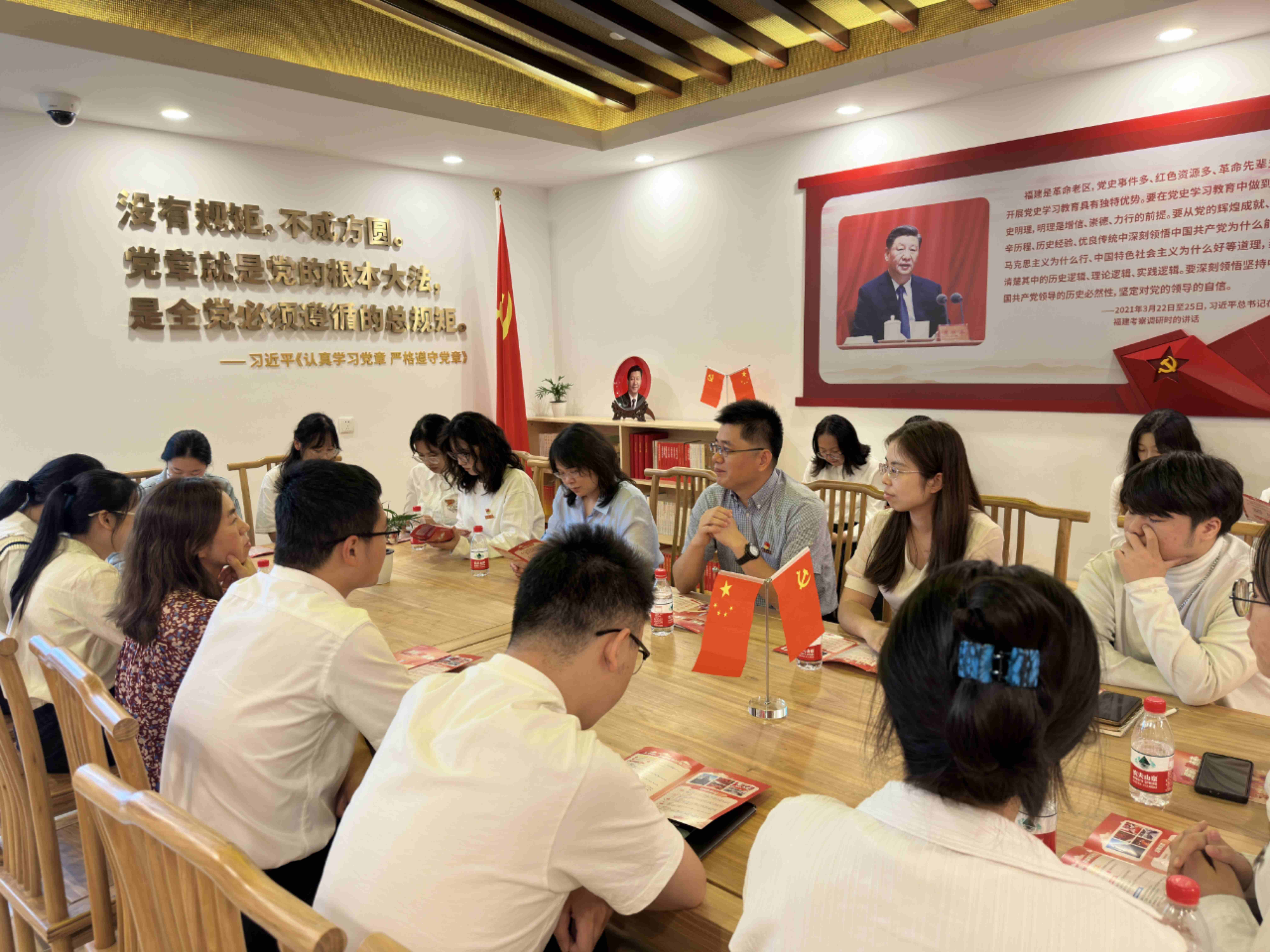 本次活动以主题参观、学习研讨、座谈交流为主要形式,为学生上了一堂生动的思政课和职业规划课。首先,学院师生一行在中信银行福州分行的负责人的带领下参观了银行内部“追循领袖足迹,聆听时代声音”——学懂弄通做实习近平新时代中国特色社会主义思想教育基地,并在展厅中观看习近平新时代中国特色社会主义思想教育宣传片,深入学习了习近平总书记在福建工作期间的重要论述与实践事迹,重点解读了习近平新时代中国特色社会主义思想在福建的孕育与实践、习近平新时代中国特色社会主义思想的主要内涵以及中国特色社会主义事业的伟大实践等关键内容,充分激发了学生们的思考和讨论热情,引发了热烈反响。