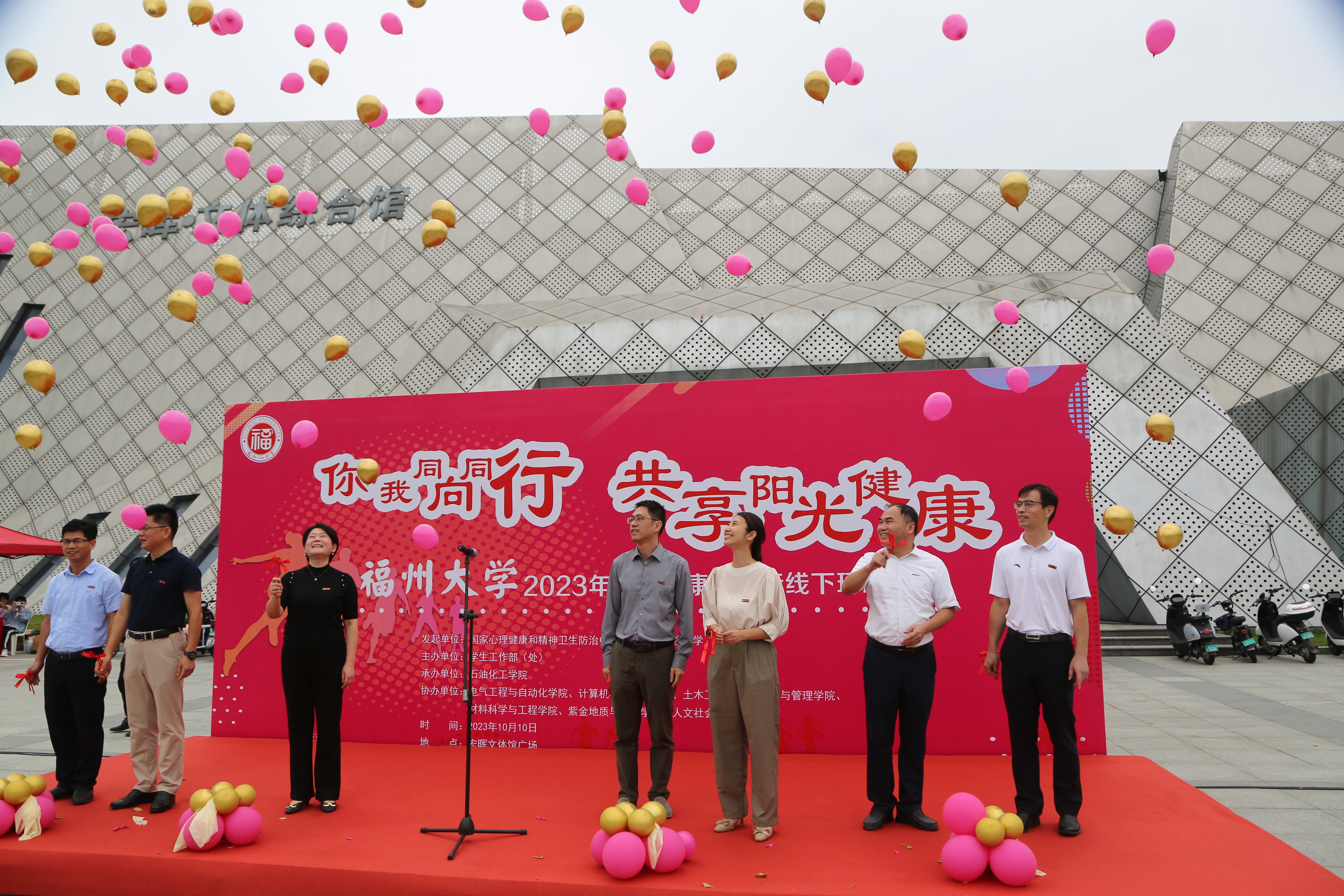 2023年心理健康校园行线下环跑活动启动仪式在宏晖文体综合馆前隆重举行。校学生工作部(处)部(处)长张红、石油化工学院党委副书记蒋林娟、电气工程与自动化学院党委副书记钟钛申、计算机与大数据学院党委副书记傅茂松、土木工程学院党委副书记郑寿、紫金地质与矿业学院党委副书记张志雄、起点中文网