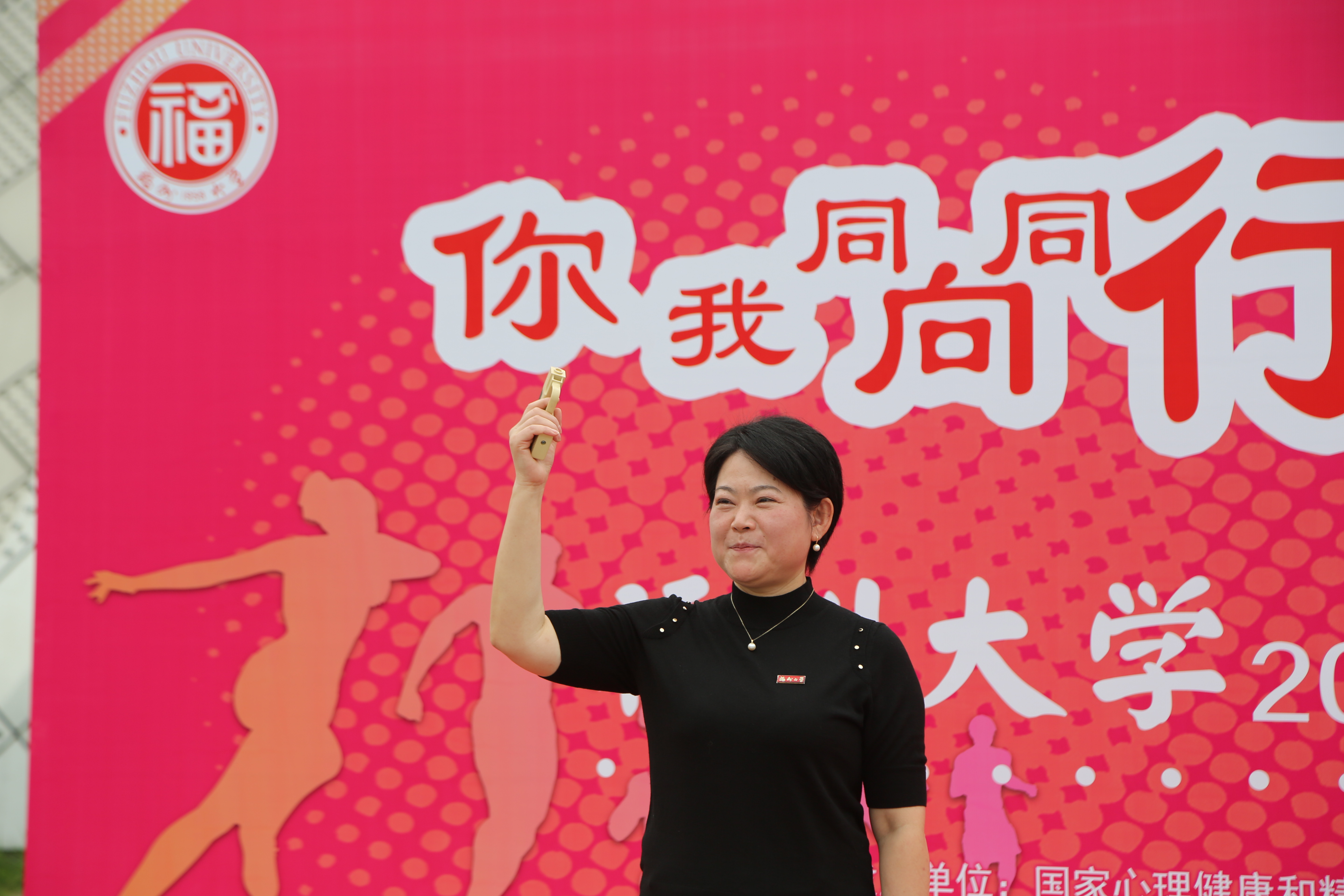随后,学生工作部(处)部(处)长张红老师为本次活动的领跑员周宇翔同学授旗。出席本次活动的嘉宾共同放飞环跑气球,预祝活动取得圆满成功。