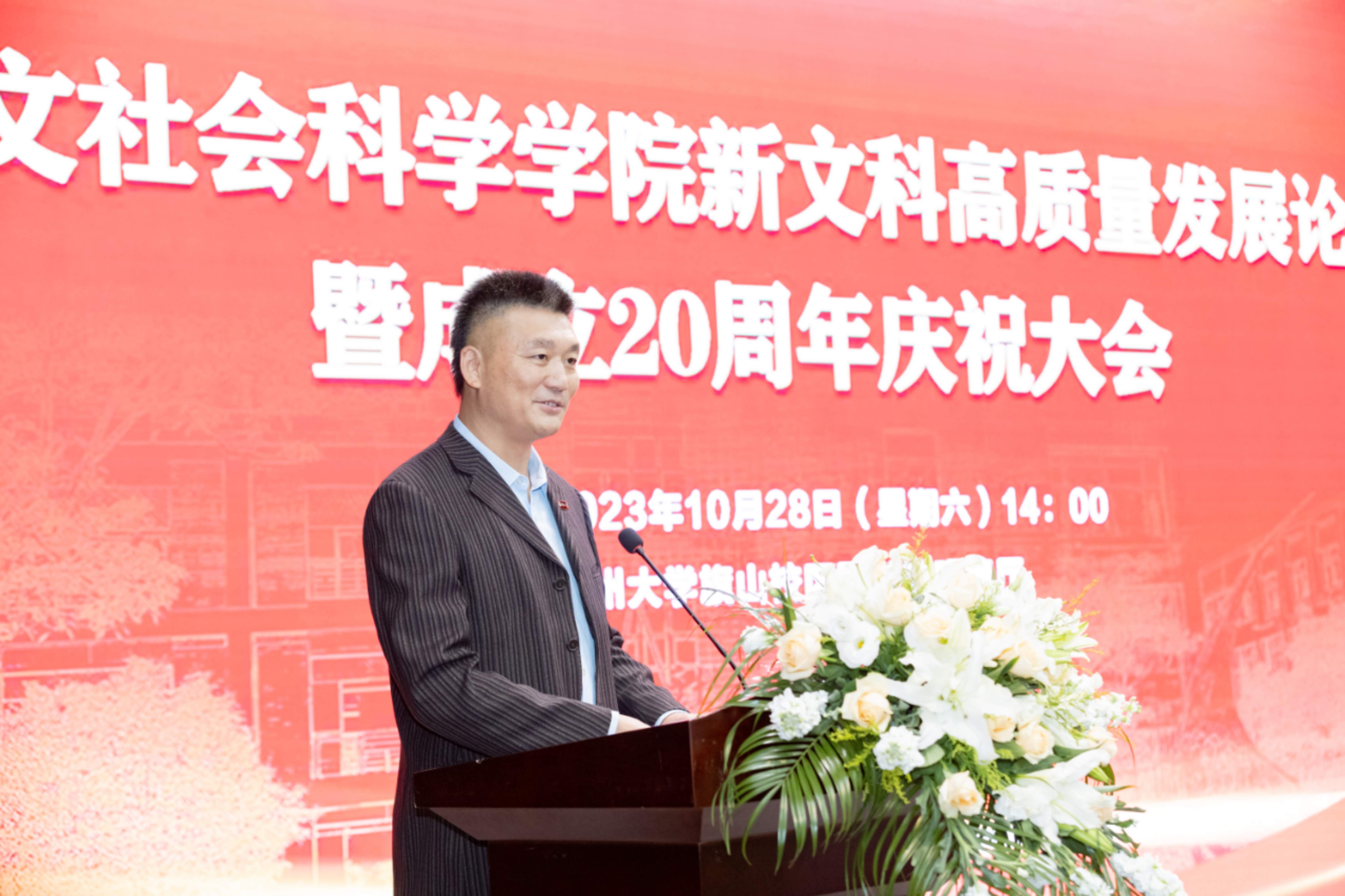 新文科高质量发展论坛暨成立20周年庆祝大会在旗山校区图书馆明德厅隆重举行。