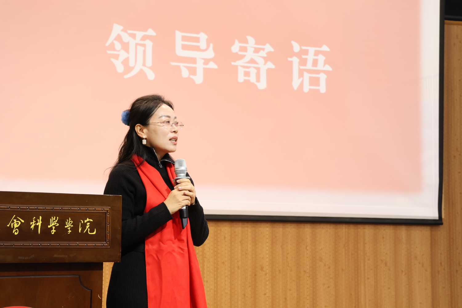 副院长陈丽君教授结合自身考研经历,悉心叮嘱同学们要调整好身心状态,合理安排复习时间,梳理知识结构,查缺补漏,暖心寄语同学们马到成功、金榜题名。