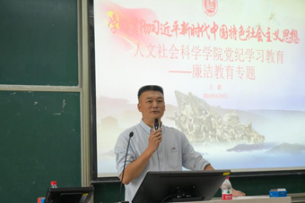 党委书记王群以《弘扬传统优秀美德,推进廉洁文化建设》为题,在文科教学楼2-204教室为学院全体师生党员讲授廉洁教育专题党课。