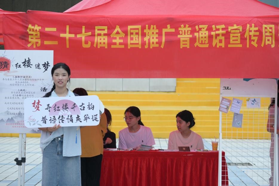 本次活动围绕“梦寻红楼千古韵,普语传情庆华诞”主题展开,以四大名著之一《红楼梦》为文本依托,将红楼元素赋予游园活动之中,使参与师生共同浸润于文化氛围中,感受流动的诗情,体悟文学经典的独特魅力。同时,通过精心设计的游园游戏,调动师生运用语言文字与文学文本互动、进行创造创作的积极性与主动性,以师生喜闻乐见的方式大力推广普通话。