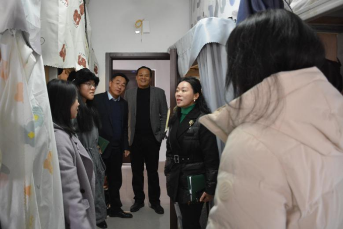 会前,吴慧娟院长、赵燕松副书记、齐朝阳老师、黄薇老师走进学生宿舍与同学们进行交流,了解近期学习和生活情况,勉励同学们共同维护良好的生活环境,以饱满的状态迎接新学期。