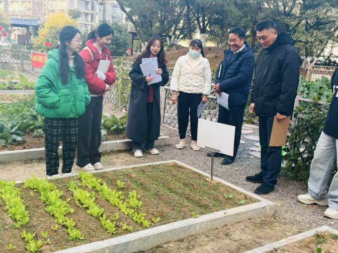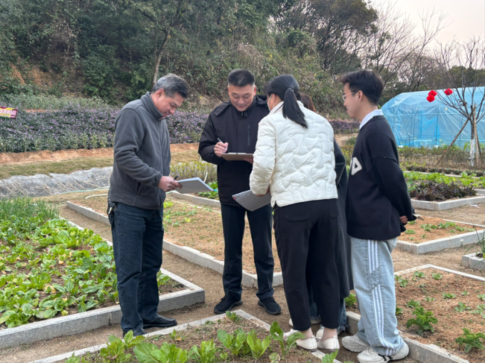 举办“耕读福山水,学韵润实秋”劳动基地主题活动。本次活动于2024年11月18日启动,在铜盘校区劳动实践基地开展一场历时两个月的耕种实践。验收环节,学院邀请校工会常务副主席王群、院党委副书记赵燕松、物业管委会陈经理、有丰富种植经验的林师傅以及辅导员谢婉婷担任实地考察评委,针对种植过程、生长情况、农物种子情况等方面进行评分并提供指导意见。