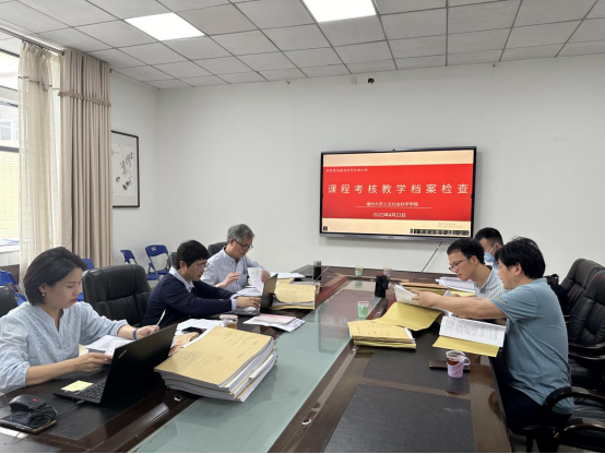于2025年4月23日下午开展校院督导联动本科课程考核教学档案检查,校教学督导员刘丹教授、陈笃钦研究员,学院分管本科教学副院长陈丽君教授以及各系督导员参加了本次检查工作。